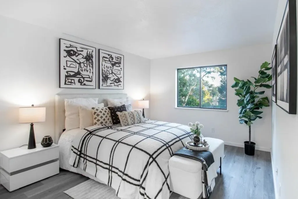 Welcome to modern Silicon Valley living in this stunning 2-bedroom, 2-bathroom residence that perfectly blends comfort and convenience. This home is strategically positioned in a world-class tech corridor, placing you just minutes away from major employers like Google, Apple, LinkedIn, and Meta. The inviting interior features a cozy living room that flows seamlessly onto a private balcony, providing an ideal space for relaxation. The gourmet kitchen comes fully equipped with sleek stainless steel appliances, while the home is further enhanced by the essential convenience of a dedicated in-unit washer and dryer. Residents enjoy premium HOA amenities, including a swimming pool, heated jetted spa, expansive green lawns, and a dedicated kids’ playground. The HOA fee covers water and trash services. For those who love the outdoors, you are perfectly situated near premier recreation spots, including Seven Seas Park, Fair Oaks Park, and the expansive Sunnyvale Baylands Park. Easy access to Route 101,237 and Lawrence Expy. A must-see!