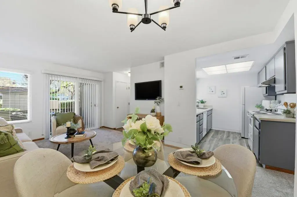 Step into this beautifully refreshed 2-bedroom, 1.5-bath home in a charming Sunnyvale community, just moments from vibrant shopping, dining, tech, and all major freeways. Warm natural light pours in through new windows and a new contemporary light fixture, complemented by all new flooring throughout and fresh paint for an airy, modern feel from the moment you walk in. The stylishly updated kitchen boasts a new range and hood, newer refrigerator, sleek new countertops, and new sink perfect for everyday cooking or easy entertaining, with cabinet colors that harmonize beautifully with the seamless flow of the new flooring. Thoughtful upgrades abound with a new front door, new sliding glass door, new blinds, newer heater, and newer bathroom vanities, offering comfort and peace of mind. Open the slider to a cozy private patio and enjoy the convenience of your own private storage, ideal for bikes, gear, or seasonal items, plus a newer indoor washer and dryer for added ease. Covered carport parking for one vehicle with storage cabinets, and a second permitted parking space. Low HOA dues and a move-in ready interior, this home offers an inviting blend of convenience, comfort, and lifestyle that makes Sunnyvale living so special.