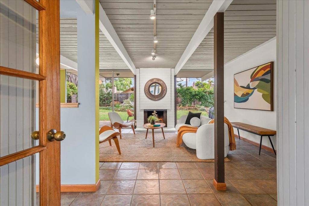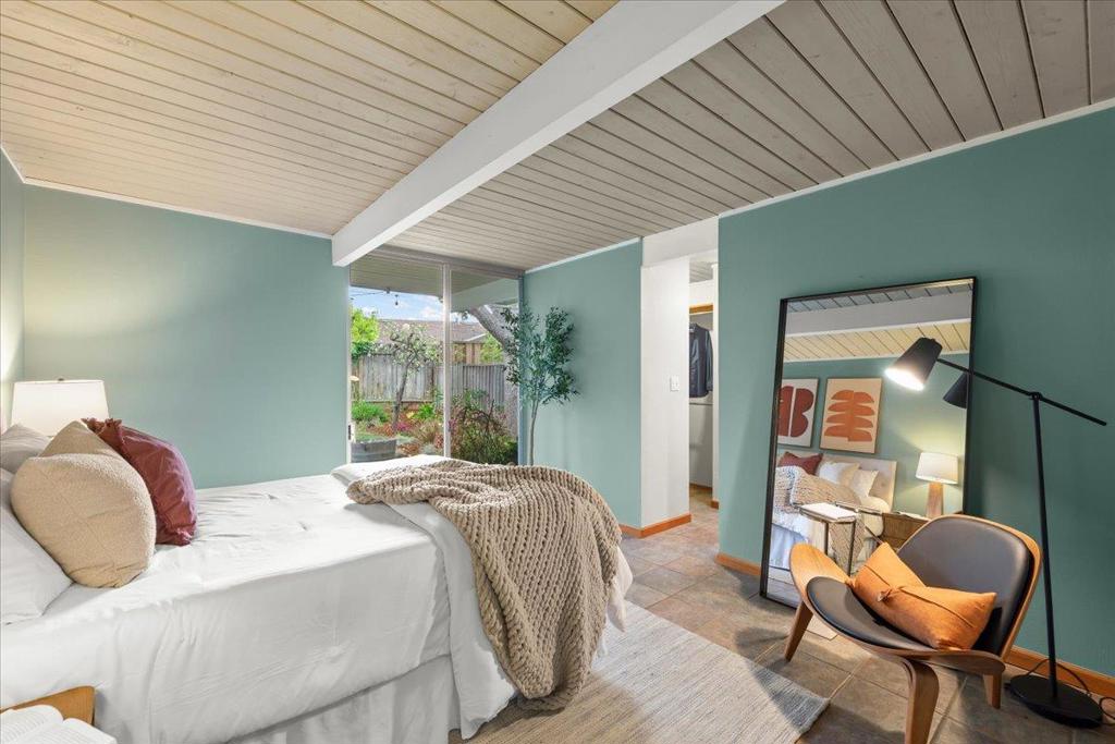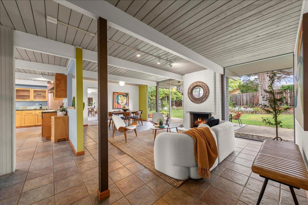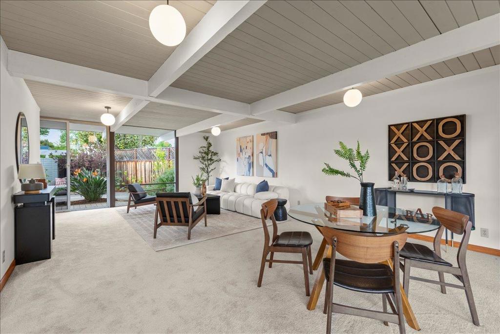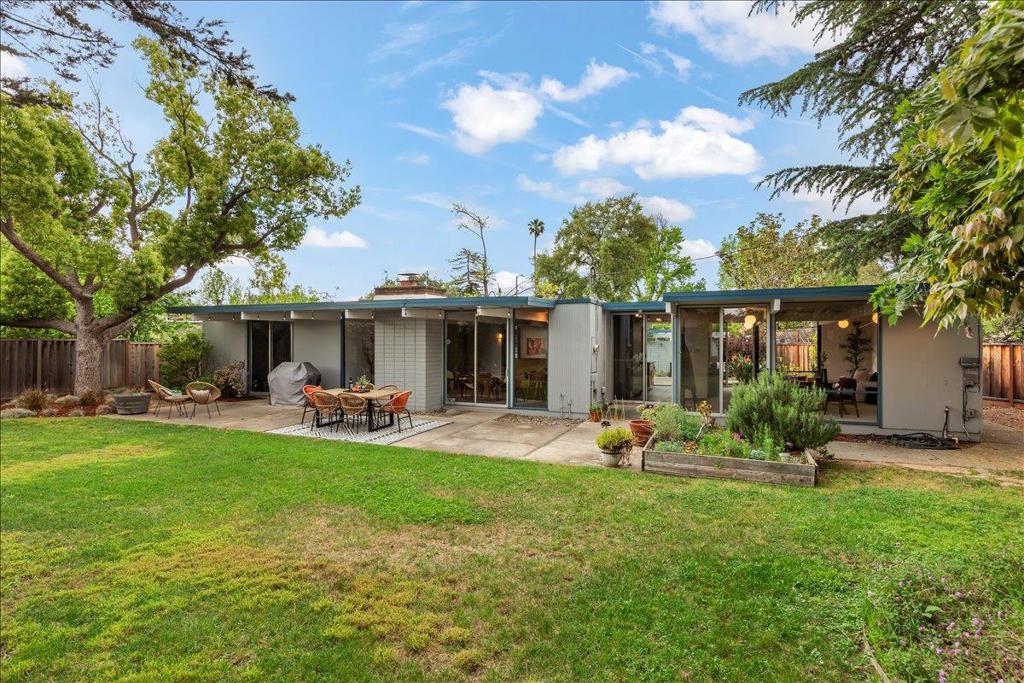 Remodeled Iconic Eichler on a rare 12,000 sf lot w/a separate ADU featuring high ceilings, kitchen, living room, bedroom & full bath. Authentic characteristics treasured to this day: Open concept living, stylish beams, soaring w/natural light through floor-to-ceiling windows framing the gorgeous outdoors, original Eichler ceiling stain, globe lighting, Italian tile flooring, & much more. Serenely situated w/a private front courtyard w/a welcoming expansive deck w/a soothing fountain. The Chef’s Remodeled kitchen features a Thermador 5 burner gas range, Thermador oven, Bosch dishwasher & KitchenAid refrigerator. Plenty of prep space on granite slab counters w/abundant cabinets, island seating & a breakfast nook. The living room features a cozy fireplace & separate dining area. The spacious family room is a huge bonus w/new carpeting. The primary features a walk-in closet & remodeled bath. The hall bath has been updated w/designer tile & edgeless glass. The park-like backyard enjoys a large grassy area for play surrounded by mature plants. Located in a fabulous neighborhood w/2 parks & close to shopping, Apple, Nvidia, Google & other Major Silicon Valley Employers. Excellent Schools: Stocklmeir Elementary, Cupertino Middle, & Fremont High.