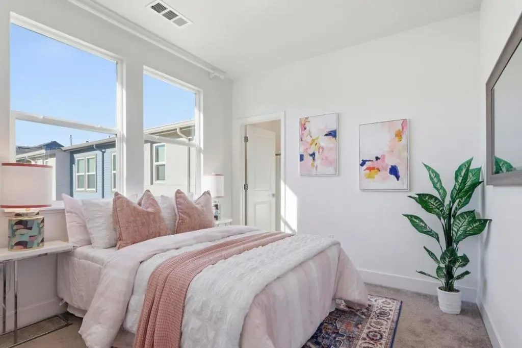 Built in 2018, this auspicious 2-bedroom, 2.5-bath townhome in the highly desirable Nova at The Vale offers modern design, functional comfort, and exceptional Silicon Valley accessibility. The bright open-concept main level features a sleek gourmet kitchen with quartz countertops, stainless steel appliances, and contemporary finishes. Dual primary suites provide ideal privacy and flexibility for guests, roommates, or work-from-home living. A private balcony adds inviting outdoor space, while the attached garage offers valuable additional storage space. Enjoy access to The Vales private park and clubhouse, with nearby Muwékma Park, Fair Oaks Park, Caltrain, and quick connections to Hwy 101, 237, Apple, Google, and other major tech campuses. Designed for todays connected lifestyle in one of Sunnyvales most sought-after communities.