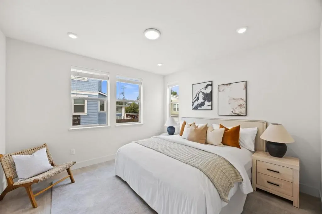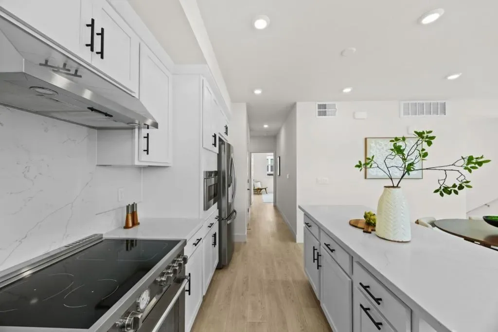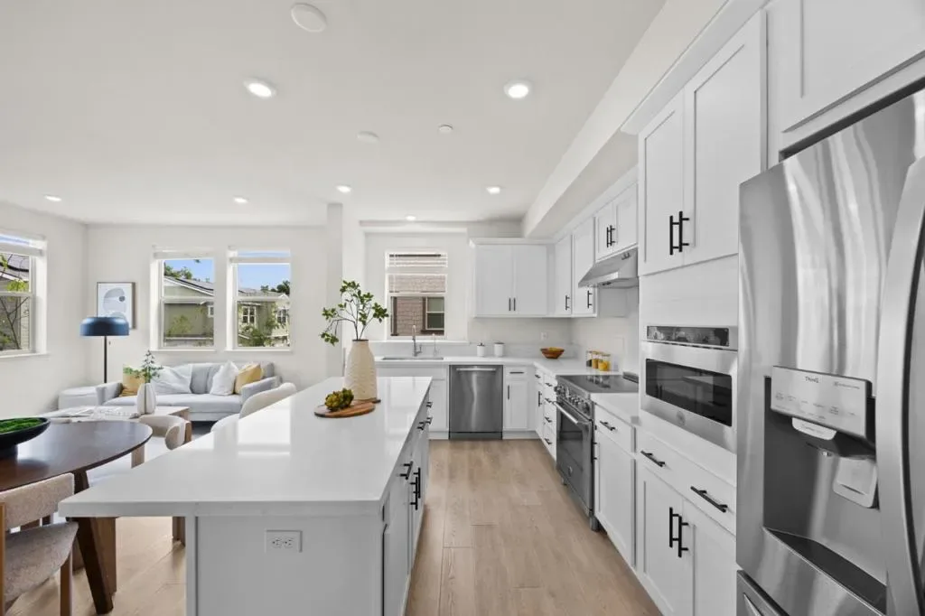 Bright, new, move-in ready end-unit townhome in the sought-after Lavender community of Sunnyvale! All living areas on one level are filled with sunlight, flowing seamlessly from the living and dining areas to the kitchen with a walk-in pantry. The spacious primary bedroom features a large bathroom, and a flexible bedroom with a Murphy bed provides comfort for guests or doubles as an office. Additional features include an owned solar system, a side-by-side two-car garage, and an RO drinking water system. Ideally located near major tech companies, groceries and restaurants, with easy access to highways. In a friendly neighborhood, this home delivers modern Silicon Valley living with style and energy!