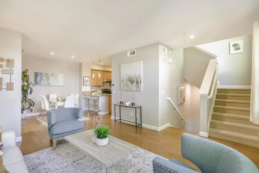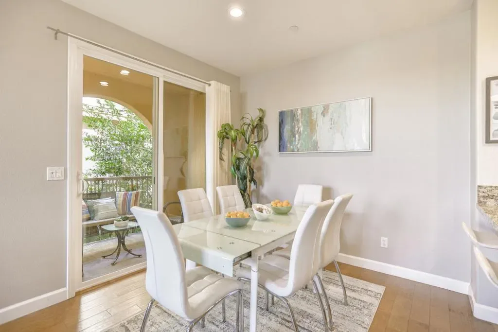 Stunning corner-unit townhome-style living in the heart of Sunnyvale! This 2b/2.5b residence features a bright, functional floor plan with dual primary suites and an attached 2-car garage. Bathed in natural light, the open-concept main level showcases gorgeous hardwood flooring throughout the living room, which flows seamlessly into a chefs kitchen equipped with sleek granite countertops, a gas range with hood, stainless steel appliances, and ample cabinetry. Step onto your private balcony to enjoy fresh air and morning coffee. A convenient powder room and in-unit laundry complete the main level. Upstairs, both primary suites offer generous space, including a double-sink vanity and walk-in closet in the main master. Central heating and air conditioning for year-round enjoyment. Resort-style community with a clubhouse, mini golf, fitness center, movie theater, BBQ areas, and a playground. The HOA fee covers water and trash services. Short walk to parks. Perfect for tech professionals, this home is just minutes from Apple, Google, Amazon, NVIDIA, and more. Close to shopping and dining destinations, including Downtown Sunnyvale, Costco, Whole Foods, Safeway and more. Ideal for discerning homeowners seeking comfort and styleor savvy investors eyeing strong rental potential.