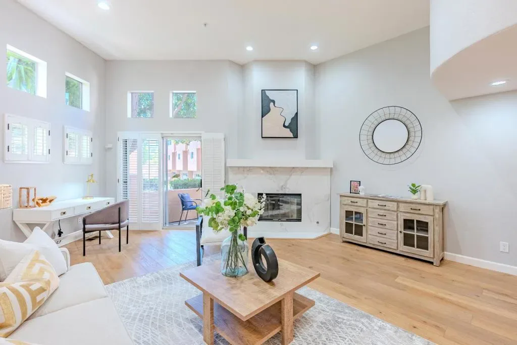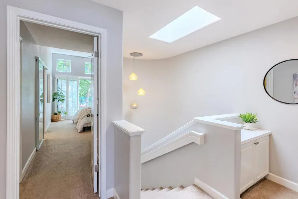Perched in a serene gated community, this newly remodeled townhome boasts a unique loft-style design with soaring vaulted ceilings, dual-pane picturesque windows, and skylights. Located less than a mile from downtown Sunnyvale/Caltrain and minutes to downtown Mountain View, convenience meets style in this thoughtfully upgraded home. Inside, you’ll find a blend of hardwood and carpet flooring, recessed lighting, new heat/AC, a cozy refinished gas fireplace and laundry closet with washer and dryer. The gourmet kitchen features high-end stainless steel appliances, stunning new backsplash, quartz countertops, ample cabinetry, pantry and breakfast bar. Luxury continues with two spacious bedroom suites, each with newly remodeled spa-like en-suite bathrooms. The primary suite includes a walk-in closet for added comfort. Additional highlights include a two-car garage with extra storage and EV hookup (220V), a relaxing private patio and multiple balconies. Community amenities include a swimming pool, spa, clubhouse and playground. With close proximity to parks, restaurants, shopping, golf courses and major tech giants like Google, Apple, and LinkedIn, as well as easy access to Highways 101, 85, 237, Central Expressway and VTA. Do not miss your chance to own this rarity. It will go FAST!