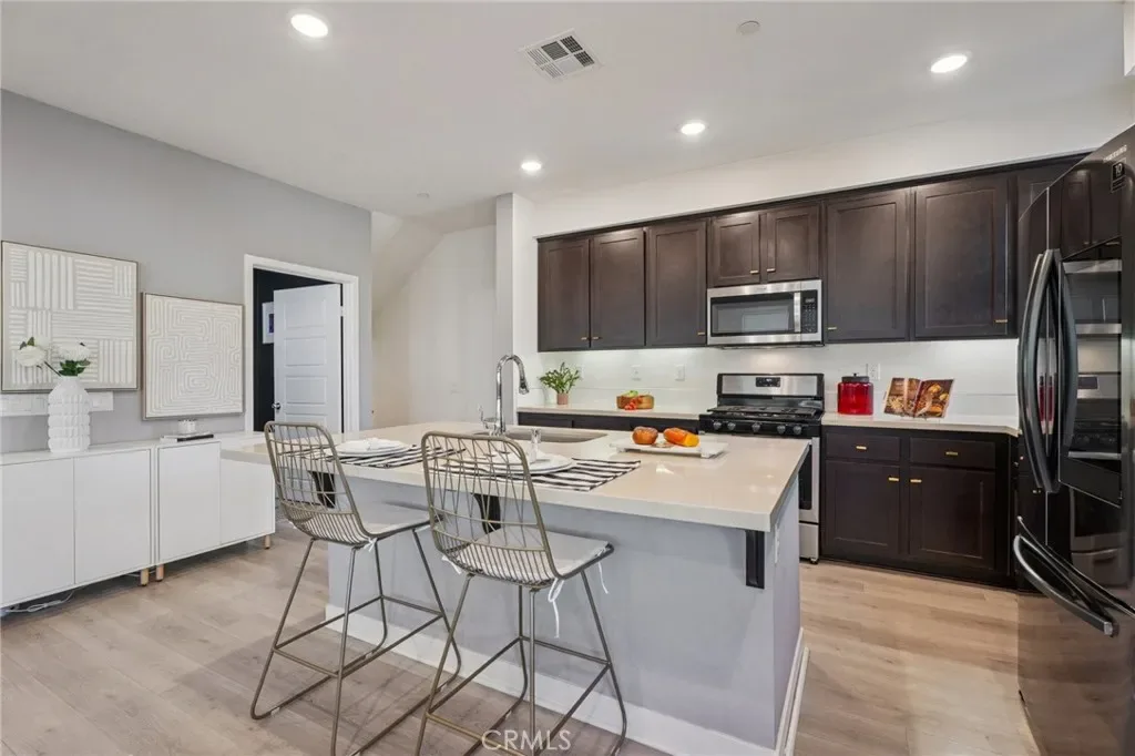 Welcome to this beautifully maintained end-unit townhome located in the desirable Tovara West community built by Williams Homes, a respected California homebuilder known for modern energy-efficient townhome developments. Built in 2020, this home offers approximately 1,440 sq ft of bright, open living space with 3 bedrooms, 2.5 bathrooms, and an attached oversized two-car garage. The thoughtfully designed floor plan features a spacious living area that flows seamlessly into a modern kitchen complete with rich Kona cabinetry, Quartz countertops, a large center island, and abundant natural light. Stainless steel appliances and upgraded flooring throughout add to the home’s contemporary feel, with durable wood-style laminate on the main living level. On the third level, you’ll find 3 spacious bedrooms and laundry closet conveniently located in the hallway. Two of the bedroom closets have been fully upgraded for enhanced storage and organization. The home also includes the efficiency of a tankless water heater. Ideally positioned next to the community pool and spa, guest parking, and dog park, this home offers both convenience and lifestyle. Residents also enjoy access to a picnic area and tot lot, creating a welcoming neighborhood environment. Located just minutes from shopping, dining, and major freeways including the 210, 118, 14, 5, and 2, this property provides easy access throughout the San Fernando Valley and beyond. Don’t miss this opportunity to own a modern, move-in ready home in a prime Sylmar location.