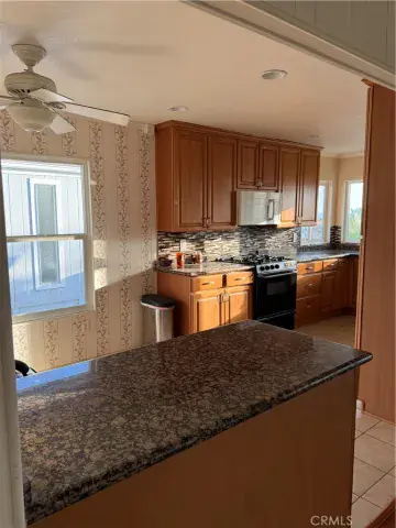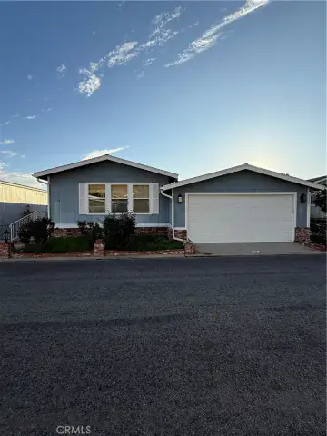GORGEOUS 3 bedroom, 2 bathroom 1760 square foot home with AMAZING floorplan, GREAT CURB APPEAL, beautiful mountain views, located at highly desirable Oakridge gated Mobile Home Park. Property has BRAND NEW ROOF in 2024 that cost over $28,000, very nice BRAND NEW CARPET in 2 of 3 bedrooms, Wood Floors, PAINTED bedrooms, bathrooms and kitchen ceiling, Kitchen is upgraded with GRANITE COUNTERS, TONS of CABINET SPACE, LAZY SUSANS, tile backsplash, New Garbage Disposal, Large Dining Area, Huge Living Room has high vaulted ceilings, 3rd bedroom has Walk In Closet and can be used as an Office or Bedroom, Newer Double Pane Windows throughout, Huge Master Bedroom with high vaulted ceilings has private bathroom with Granite Counters, large tub to relax in, separate shower, Large Sliding Mirrored Closet Doors and very nice NEWER, excellent quality sliding glass doors lead to covered patio with incredible mountain views. Side yard is good size, 2nd bathroom also has granite counters. Central A/C, brand new Water Heater, Laundry Room with a LOT of Cabinet Space, BRAND NEW 2 CAR ATTACHED GARAGE Door and new Mechanism, front yard has beautiful Roses and automatic sprinklers. Resort Style Amenities include Pool, 2 spas, Clubhouse, Library, Billiards, Gym, Putting Green, Pickleball, picnic areas with large beautiful greenbelts, tennis, basketball, parties and events at Clubhouse, Yoga Classes, Pool Exercise Group and more, 24 hr. Security Guard, RV Storage for boats and RV, guest parking and more. Space Rent lower than most Homes and Rent Control is HUGE PLUS.