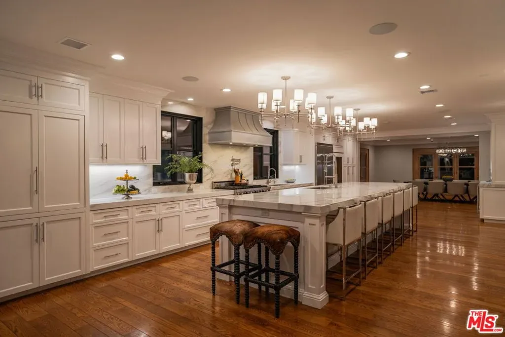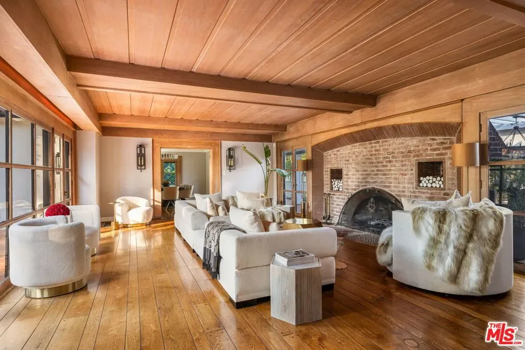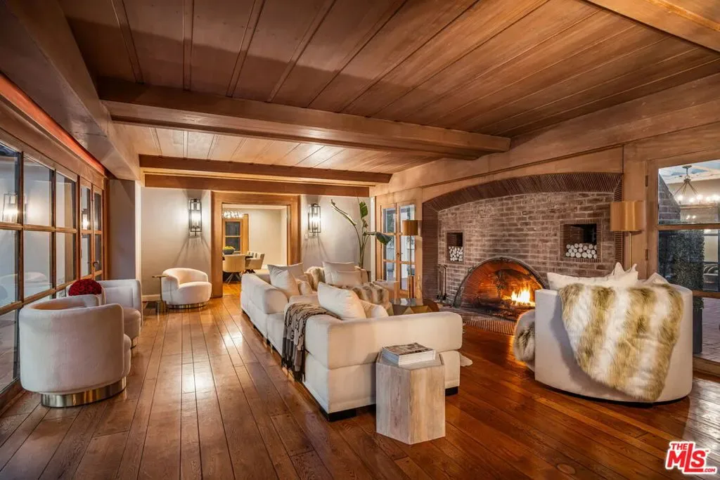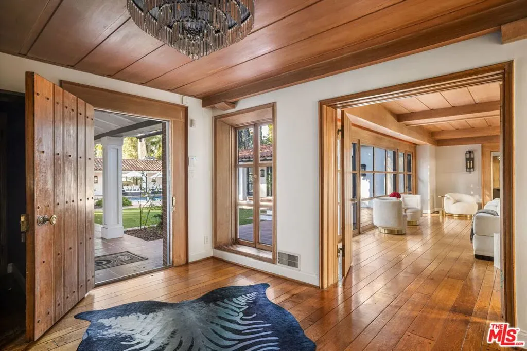Set behind gates on just over an acre of flat, private grounds, this exquisitely remodeled 1923 Spanish hacienda offers rare scale, privacy, and a true compound lifestyle in the heart of Tarzana. Thoughtfully arranged across multiple structures, the estate includes a grand main residence and a separate guest house, creating a secluded retreat moments from everyday conveniences. The main residence features six bedrooms and eight bathrooms, blending timeless Spanish architecture with refined modern living. Original details remain, including three authentic wood-burning fireplaces, exposed wood beams, and rich materials, all carefully preserved and enhanced through a comprehensive remodel. Wide-plank hardwood floors, custom stonework, Calacatta stone finishes, and French doors throughout create a light-filled interior with seamless indoor-outdoor flow, ideal for both grand entertaining and intimate daily living. At the heart of the home is a chef’s kitchen anchored by a stunning 16-foot Calacatta marble island, complemented by custom cabinetry and top-of-the-line professional appliances, opening effortlessly to multiple indoor-outdoor living and dining areas. Additional highlights include a fully integrated surround-sound system, a dedicated home theater room, and a comprehensive security system. The separate guest house offers an additional bedroom and bathroom with exceptional versatility, perfect for guests, a private office, gym, pool cabana, or game room, enhancing the property’s true compound setting. Outdoor living is the soul of the estate, featuring expansive, flat grounds, a resort-style heated saltwater pool, mature landscaping, and multiple dining and entertaining areas. Ample parking includes a four-car garage and generous additional on-site parking. A rare opportunity just moments from El Caballero Country Club, dining, shopping, and top-rated schools, this gated Spanish estate delivers an exceptional blend of privacy, scale, and convenience.