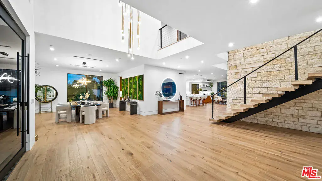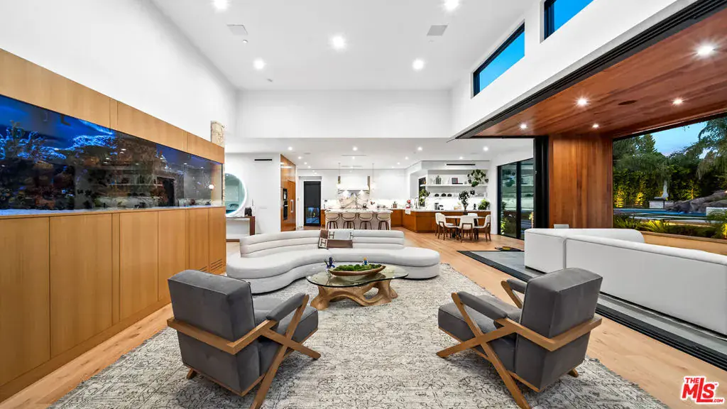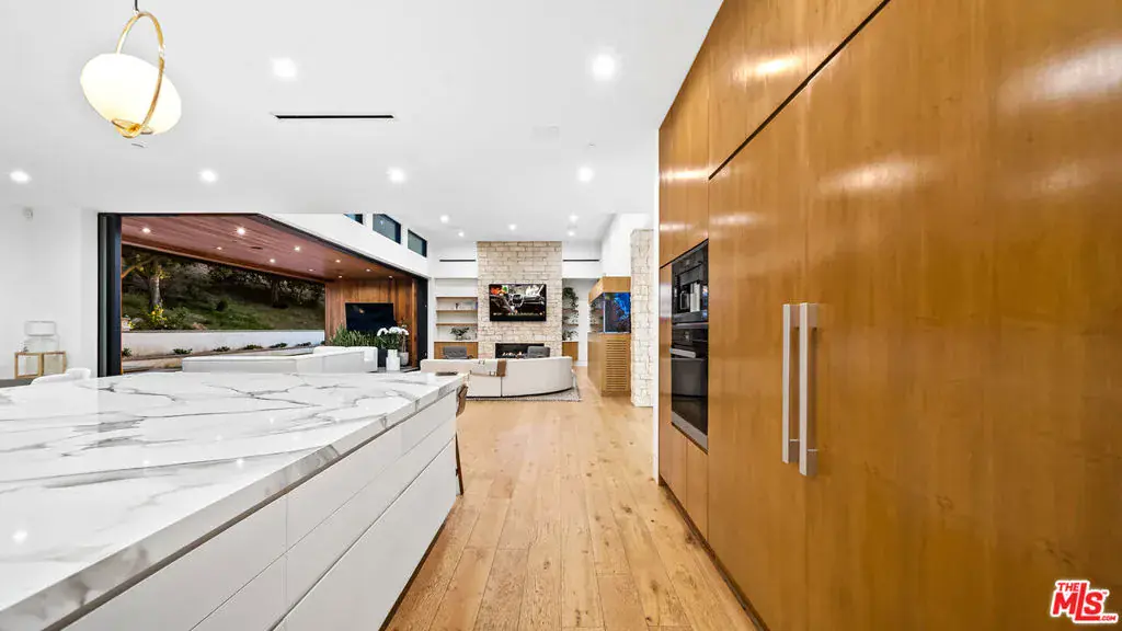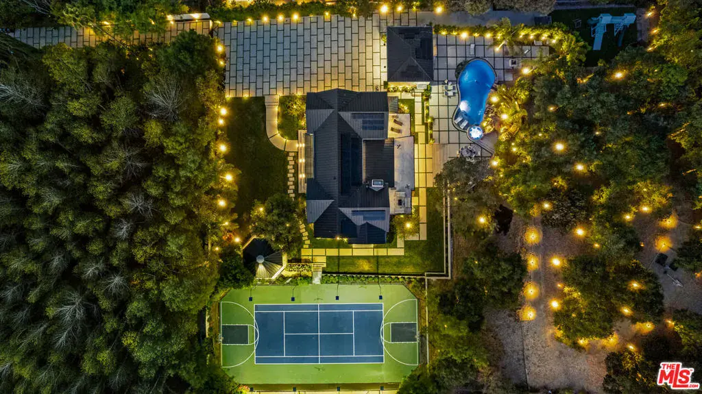 Experience exceptional living in this newly constructed modern farmhouse, located on a sprawling 1.6-acre flag lot in Tarzana. This extraordinary estate, designed for grand living and entertaining, is accessed through two private gates and a 400-foot driveway, leading you to a home that combines elegant design with practical features. The home epitomizes refined living and timeless luxury, offering 5 spacious bedrooms and abundant room for comfort and convenience. The expansive open-concept layout is perfect for both relaxation and entertaining, with seamless transitions between indoor and outdoor spaces. The custom chef’s kitchen boasts state-of-the-art Miele appliances, a built-in coffee maker, wine cellar, butler’s pantry, large pantry, and a massive center island with bar seating. The kitchen opens up to the large family room featuring a fireplace, aquarium, custom shelving and views of the meticulously landscaped grounds, creating a welcoming atmosphere for everyday meals and grand gatherings. A formal dining room, living room, lounge area, and an additional eating area complete the downstairs.The second level offers an additional family room, oversized ensuite bedrooms, and a laundry room. The luxurious primary retreat features beamed ceilings, a fireplace, custom shelves, an expansive balcony that overlooks the backyard, dual large closets with custom cabinetry, dual vanities, a soaking tub. and a large steam shower. The estate is designed with entertainment in mind, featuring a full-size tennis and basketball court, a resort-style pool with a water slide, waterfalls, a baja shelf, and a grotto. There’s also a versatile pavilion with a bath and wet bar for hosting events, and a covered tennis pavilion. Enjoy cinematic experiences in the state-of-the-art home theater, or unwind in the private gym with direct access to the tennis and basketball court.Additional features include a main floor ensuite bedroom, a detached guest house for visitors or extended family, a three-car garage, a smart home and security system, and ample parking for multiple cars.