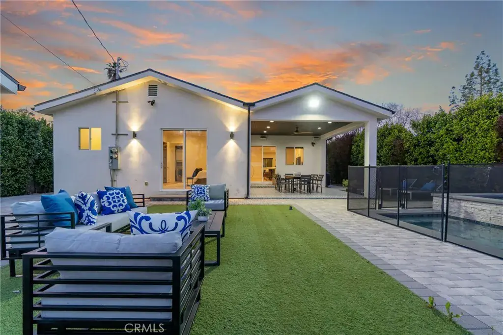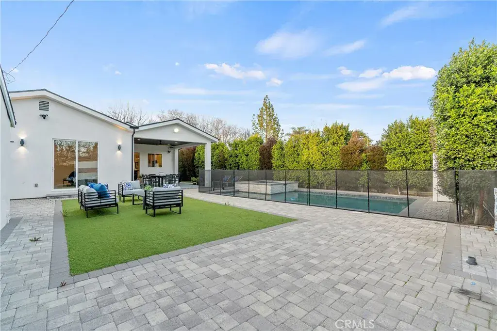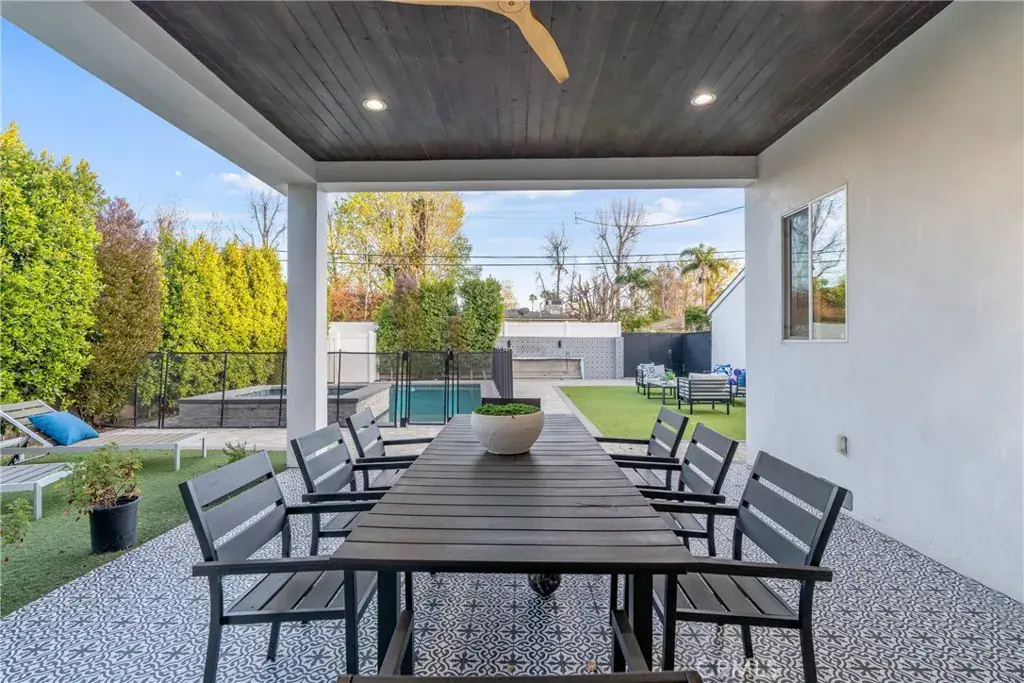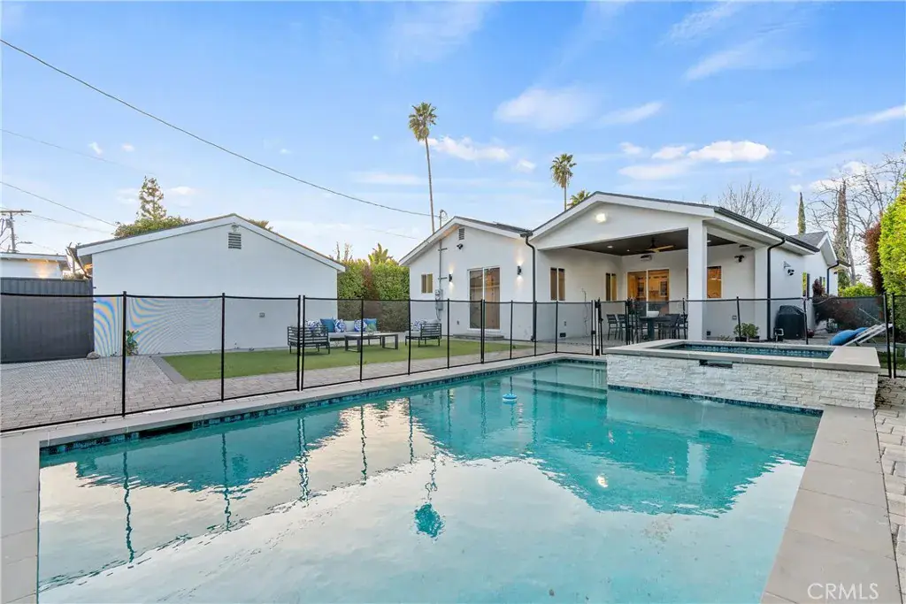 SEPERATE ADU INCLUDED IN THE LEASE!~ Discover this fully furnished, charming 4-bedroom home in Tarzana, complete with a pool and spa. This home features tall ceilings throughout and new white oak flooring. The open concept floor plan offers a fully equipped kitchen with generous cabinet space, dining, living room with fireplace and a primary suite with en-suite bathroom and soaking tub. There are two additional spacious bedrooms in the home, one with an en-suite bathroom, and the other with a hallway bathroom just steps away. Outside, enjoy the generous sized yard completely fenced in and hedged for privacy. The backyard features a pool, hot tub and covered patio area. Property has solar system. Conveniently located near shops, restaurants, and easy access to major freeways.