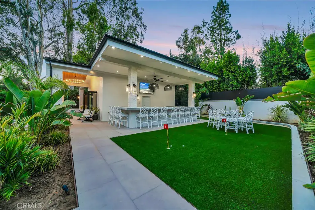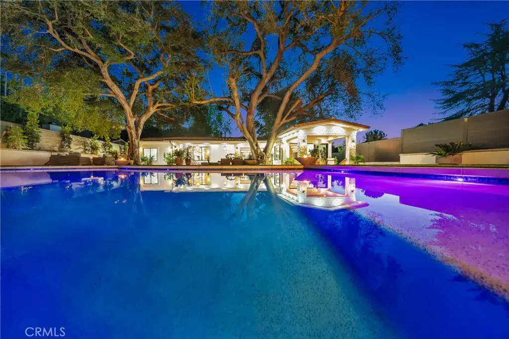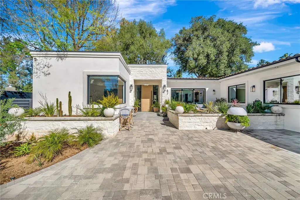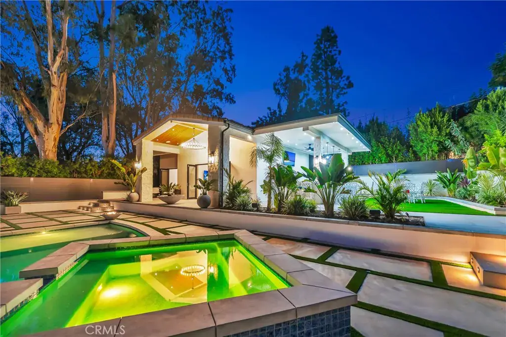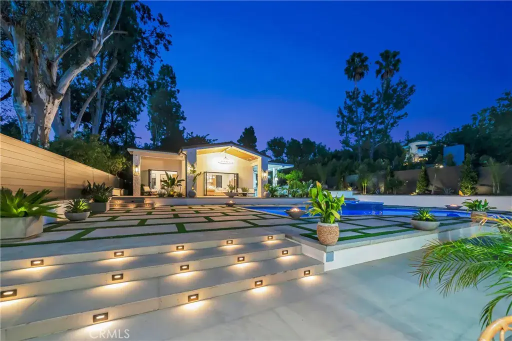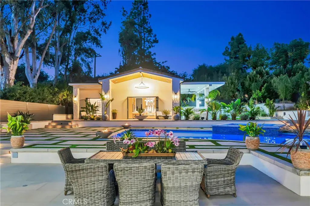 Brand-new private resort-style estate offering approximately 6,500 sq ft of single-story luxury living on an expansive 28,000 sq ft flat lot, south of the Boulevard in one of Tarzana’s most sought-after neighborhoods. Fully gated and set within a prestigious enclave of luxury homes, this property delivers exceptional privacy, security, and lifestyle. The main residence features 5 en-suite bedrooms and 6 bathrooms, with each bedroom designed as a private retreat. Offered fully furnished with high-end designer pieces and true turnkey convenience. The expansive commercial-grade chef’s kitchen is equipped with top-tier appliances, built-in refrigeration, and oversized prep space ideal for entertaining. Additional highlights include multiple fireplaces, integrated premium sound system, and 11 TVs throughout. Resort-style grounds include a stunning pool & spa with Baja shelf, multiple fire pits, six outdoor lounge areas, commercial-grade BBQ station, private putting green, and parking for up to 10 vehicles. A detached guest house with private entrance offers a full kitchen, living area, laundry, and private suite ideal for guests, extended family, or staff.