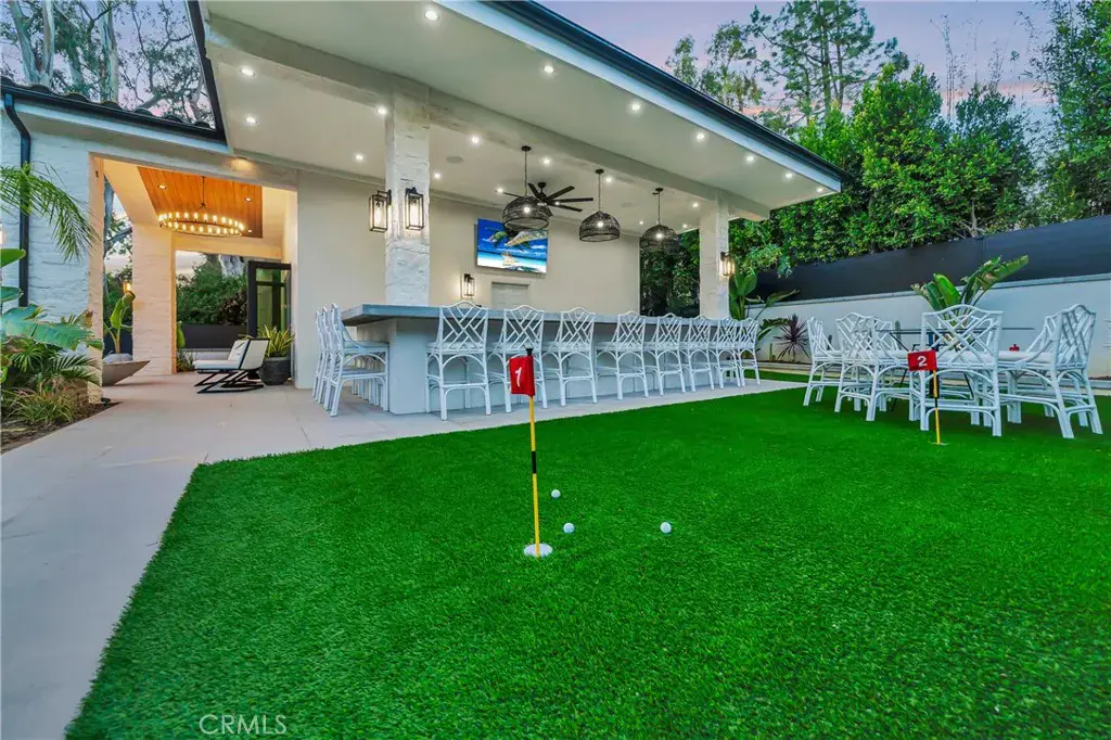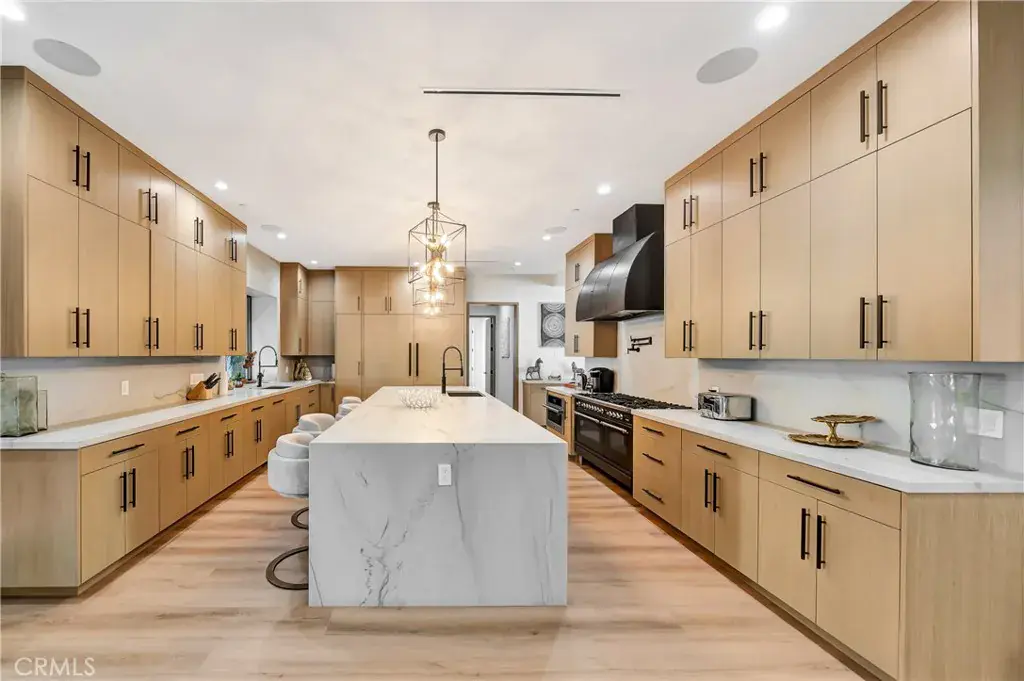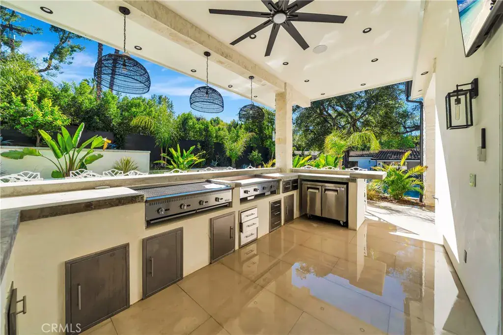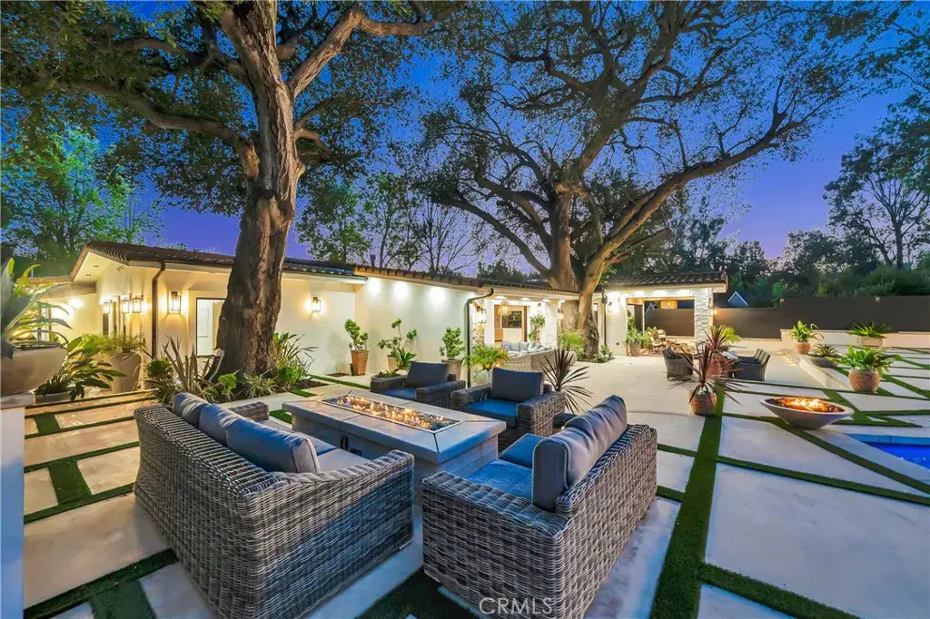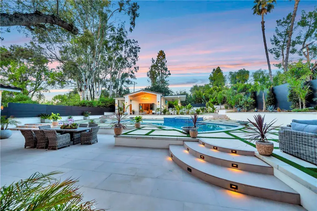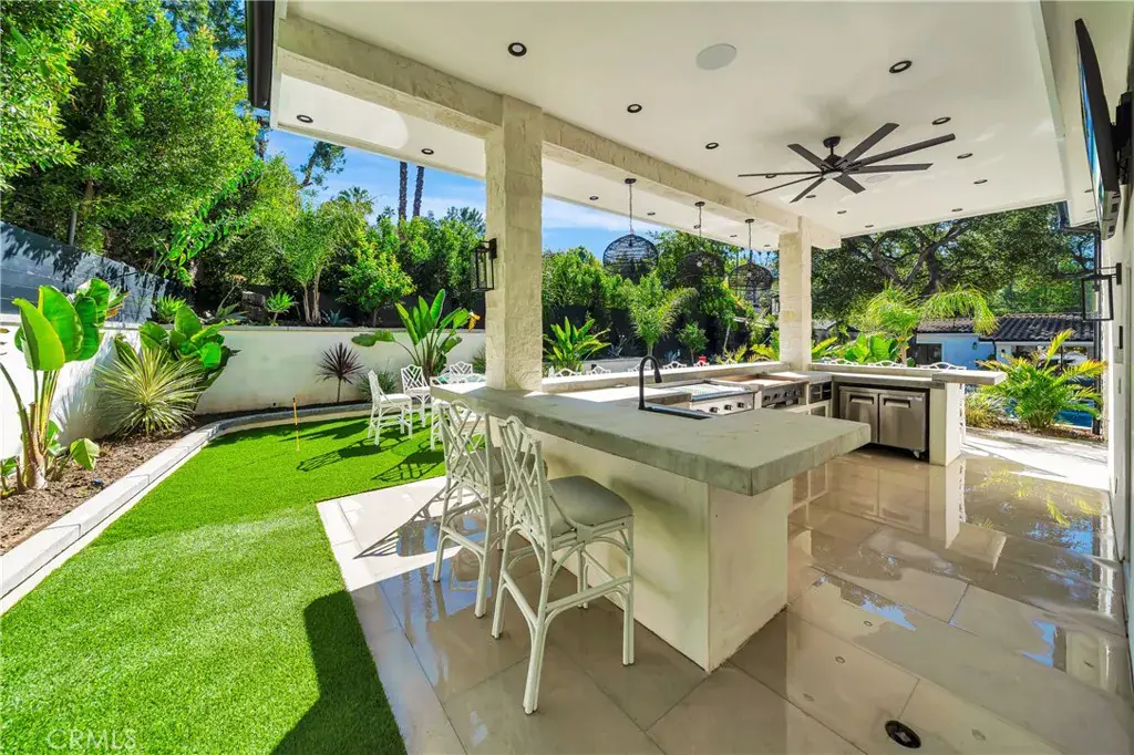 Brand-new private resort-style estate offering approximately 6,500 sq ft of single-story luxury living on an expansive 28,000 sq ft flat lot, south of the Boulevard in one of Tarzana’s most sought-after neighborhoods. Fully gated and set within a prestigious enclave of luxury homes, this property delivers exceptional privacy, security, and lifestyle. The main residence features 5 en-suite bedrooms and 6 bathrooms, with each bedroom designed as a private retreat. Offered fully furnished with high-end designer pieces and true turnkey convenience. The expansive commercial-grade chef’s kitchen is equipped with top-tier appliances, built-in refrigeration, and oversized prep space ideal for entertaining. Additional highlights include multiple fireplaces, integrated premium sound system, and 11 TVs throughout. Resort-style grounds include a stunning pool & spa with Baja shelf, multiple fire pits, six outdoor lounge areas, commercial-grade BBQ station, private putting green, and parking for up to 10 vehicles. A detached guest house with private entrance offers a full kitchen, living area, laundry, and private suite ideal for guests, extended family, or staff.