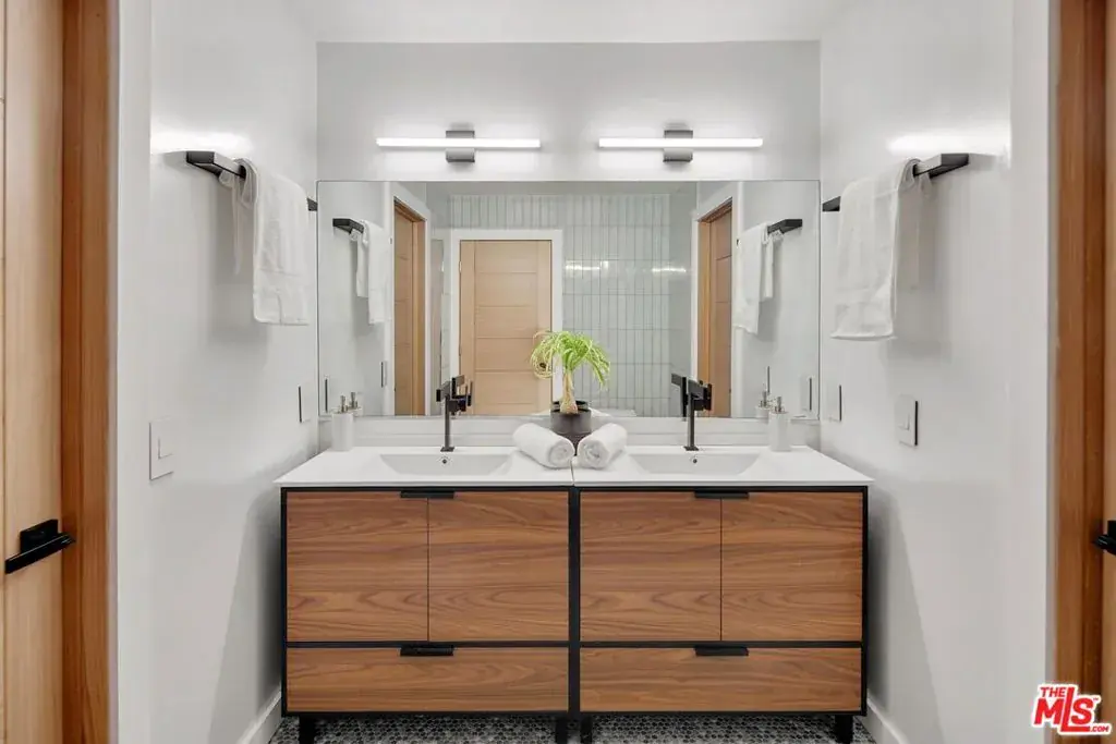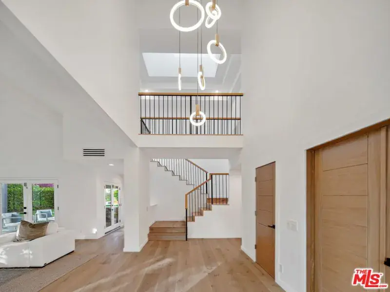 This expertly renovated, like-brand-new contemporary is optimized for the ideal indoor-outdoor Southern California lifestyle with a focus on recreation, tucked away on a coveted ‘The Hills’ cul-de-sac: Promising great value, the incredibly versatile backyard is perfect for entertaining with two covered patios, vast mahogany entertainer’s deck, fire pit, heated swimming pool with water feature, spa, grassy yard, basketball free-throw line court, playhouse, and built-in barbecue! There is even a terraced organic vegetable garden for harvesting fresh home-grown fare. A fusion of varied texture and tone contribute to the exterior’s curb appeal together with the lush, pristine gardens. Enter through a glass-paned pivot door to a double-height foyer illuminated by a large skylight above the staircase. Discover high-end finishes and wide-plank oak floors throughout. The living room features a bay window, cathedral ceiling, and a stylish quartz-clad fireplace with mantel. The formal dining room has a tray ceiling and large picture windows with sweeping views of the pool, valley, and surrounding greenery. The kitchen is fitted with a Forza porcelain double-sided waterfall island and matching backsplash with shelving, custom cabinetry, and top-of-the-line stainless-steel appliances including Wolf range, built-in coffee/espresso, and massive side-by-side refrigerator/freezer while adjacent breakfast nook is relaxing with a spectacular view. The family room is striking, with its magazine-worthy accent wall appointed with built-in cabinets, fireplace, and wine bar cellar creating a soothing atmosphere. Ground level offers a modern-design bathroom with exterior entrance, ideal for pool guests, plus an additional formal powder room. The separate office and light-filled in-law suite with attached bathroom complete the main floor in this elegant villa that can satisfy all family needs. Upstairs, through double doors is a spacious primary suite with marble fireplace and panoramic private balcony with spectacular vistas of the city, greenery, hills, Braemar, and the Valley beyond. Its spacious bathroom includes a vaulted ceiling with skylight, double-sink floating vanity, make-up desk, water closet, glass-enclosed shower with eucalyptus steam bath, and giant soaking tub. Several closets complete the ample spaces of the suite. Upper floor includes three more bedrooms and two en-suite bathrooms, one of which is Jack-and-Jill. Additional amenities include central vacuum, laundry chute, Nest smart home technology with all-in-one app control, built-in safe, new dual-zone AC/heat, and three-garage. Welcome to your new luxury lifestyle in ‘The Hills’ near Braemar and El Caballero golf clubs, schools and parks, the 101 Freeway, and the numerous shops and restaurants along Ventura Boulevard. Available with furnishings.