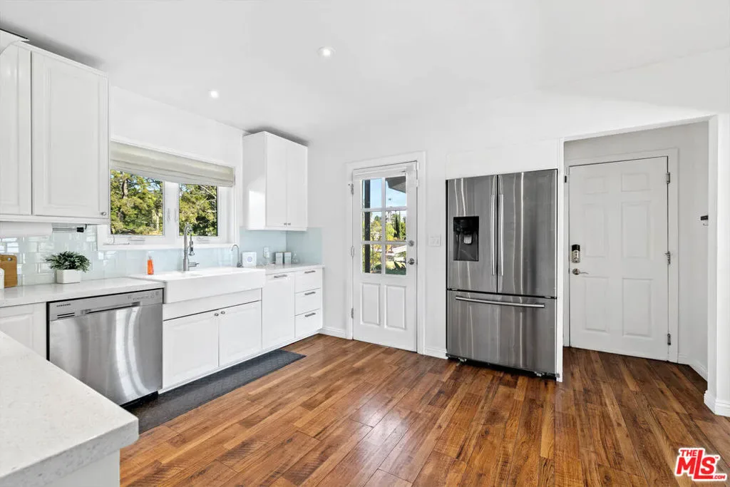 Privately located at the end of a quiet cul de sac south of the Boulevard in one of Tarzana’s most desirable neighborhoods, this fully renovated 4 bedroom, 3 bath home offers 2,091 sq ft of stylish living space. The seller states over $100,000 has been invested in upgrades, including a completely updated HVAC system, new attic insulation, modern glass panel interior doors, and more. The designer kitchen features quartz countertops, custom cabinetry, stainless steel appliances, and a farmhouse sink, opening to the living and dining areas highlighted by a sleek contemporary fireplace. The primary suite includes French doors leading to the backyard and a spa like bathroom with dual vanities and a soaking tub. The resort style backyard is built for entertaining, featuring an oversized pool with new plaster, heater, brand new motor, LED lighting, and upgraded electrical and gas lines. Landscaping improvements, including tree removal and artificial turf in the front and back yards, create a low maintenance outdoor space. Additional upgrades include vinyl fencing with custom gates, a solid glass garage door, epoxy garage floors, extensive hardscape improvements, and potential for a detached ADU (buyer to verify). Conveniently located near Braemar Country Club, hiking trails, shopping, dining, and freeway access.