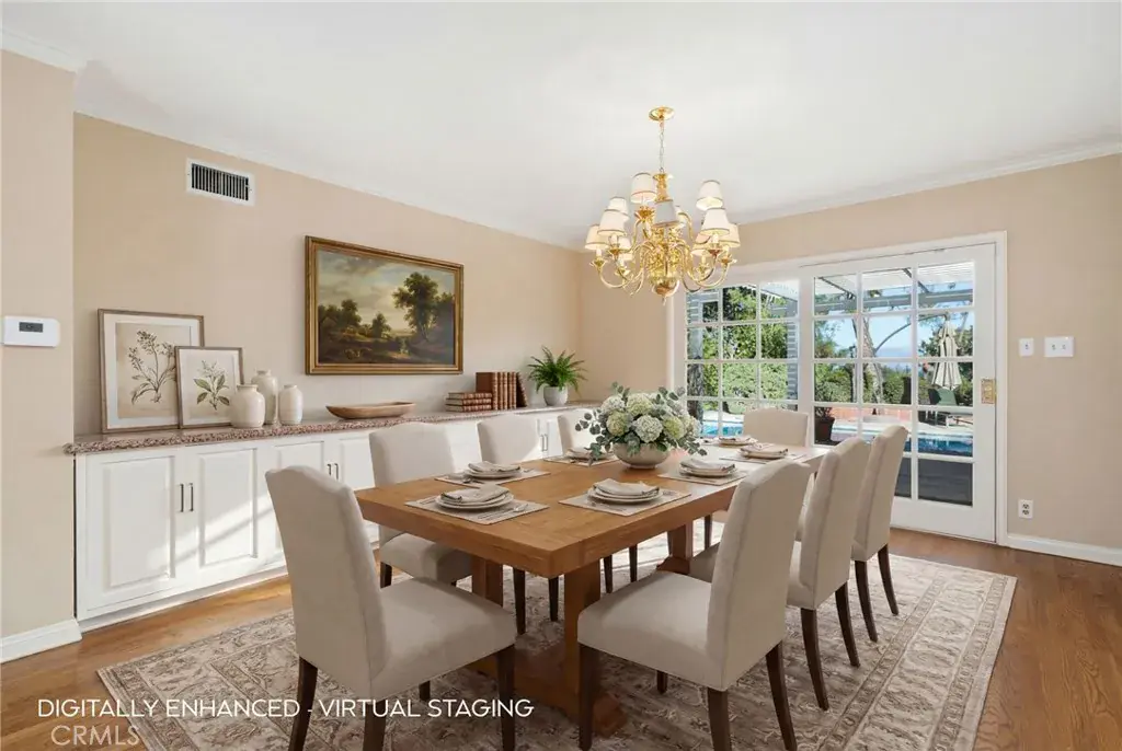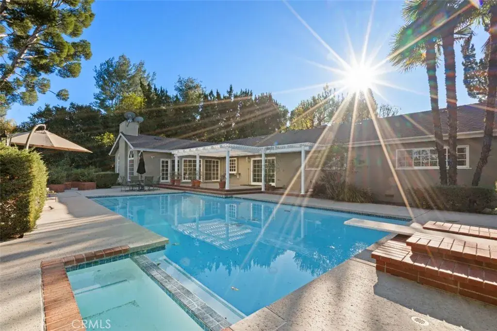 Beautiful single-level Ranch home located south of the boulevard. A brick ribboned circular driveway provides access to a brick walkway that leads to the custom leaded glass front door. As you enter the home you are welcomed by a step-down living room with fireplace and a formal dining room. An inviting family room off the kitchen features a secondary fireplace, skylight, and expansive windows that seamlessly bring the outdoors in with ample natural light. The kitchen is a chef’s delight, equipped with stainless steel appliances and ideal for both everyday cooking and entertaining. Custom bookcases and wood flooring add warmth and character throughout the home. The private bedroom wing includes three bedrooms, highlighted by a generous en-suite primary suite with a sitting area and a center-island walk-in closet. Outdoors, the yard offers a sparkling swimmer’s pool and a large patio with a fire pit perfect for entertaining. The home offers easy access to everything Ventura Blvd has to offer!
