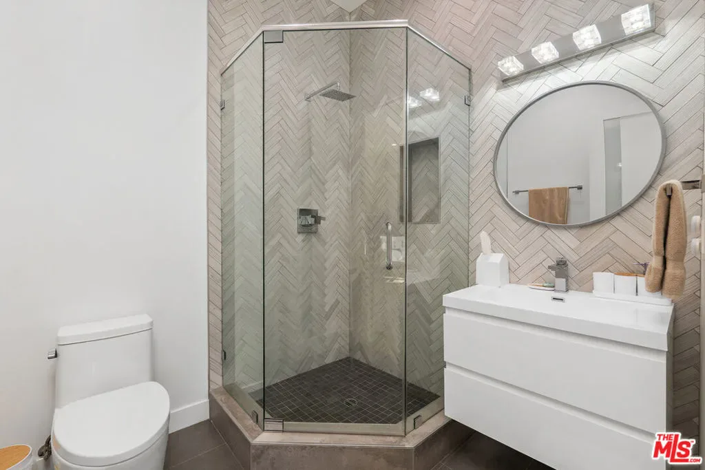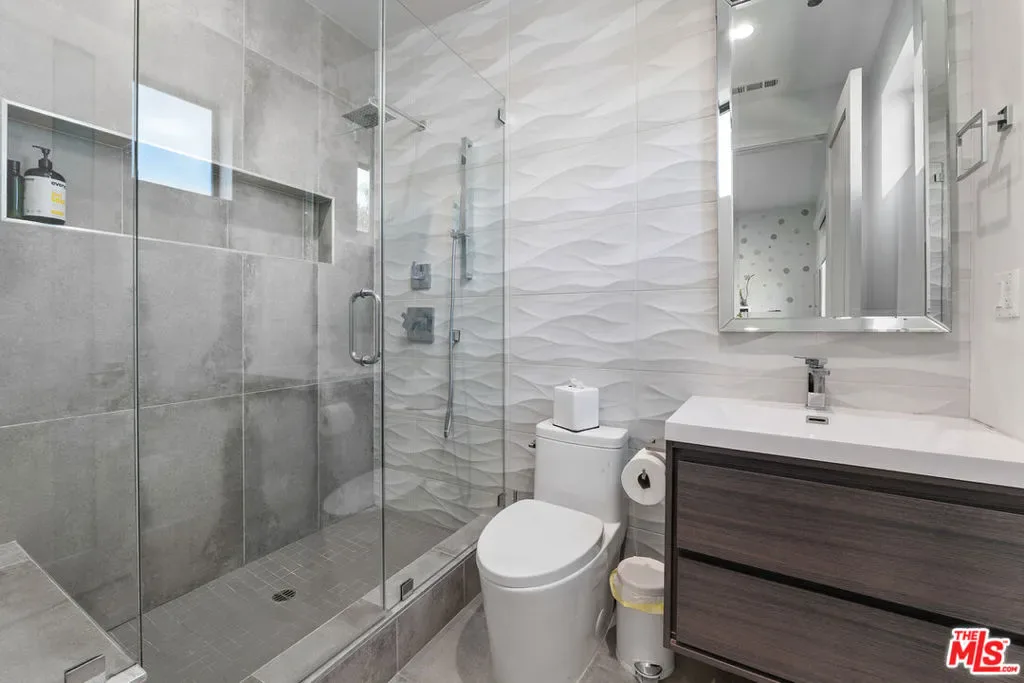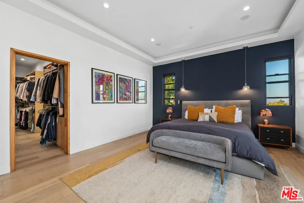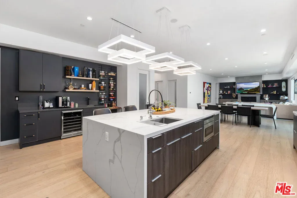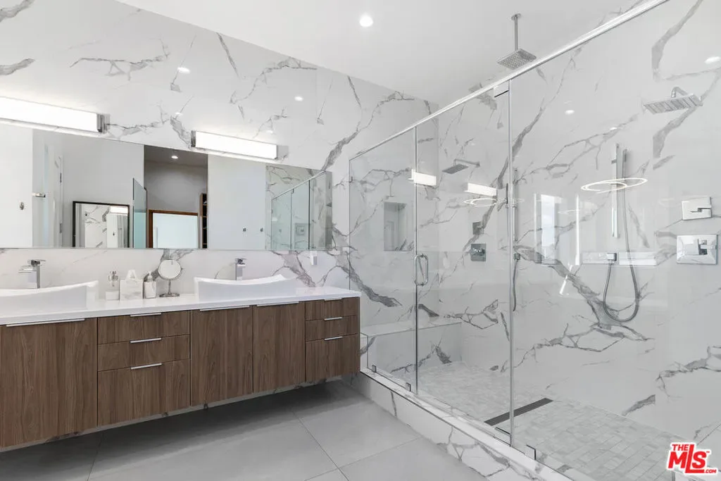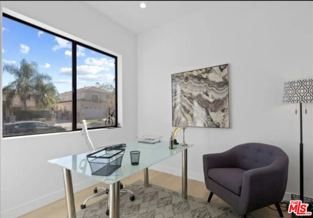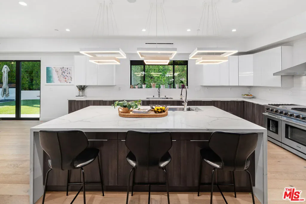 Welcome to this newly redeveloped contemporary estate, perfectly situated on a tranquil private street south of the Boulevard in prime Tarzana. Completed in 2020 and further enhanced with premium upgrades by its current and only owners, this approx. the 3,723 sq ft residence seamlessly blends modern sophistication with comfort and functionality.Inside, soaring ceilings, wide-plank hardwood floors, and walls of glass create a bright, open atmosphere ideal for entertaining and everyday living. The chef’s kitchen impresses with a quartz waterfall island, stainless steel appliances, wine wall, wet bar, walk-in pantry, and custom cabinetry all flowing effortlessly into the spacious dining and living areas. The main level also features a private ensuite bedroom, a dedicated office, a stylish powder room and an attached two-car garage.Upstairs, discover two additional ensuite bedrooms, a flexible bonus room added by the current owners perfect for a gym, nursery, or media space and a conveniently located laundry room. The expansive primary suite offers a true retreat, complete with a newly renovated and enlarged custom closet, a spa-style bath with soaking tub, oversized double rain shower, and a serene balcony overlooking the lush backyard.The resort-inspired outdoor space is designed for relaxation and entertaining, featuring a sparkling new saltwater PebbleTec pool and spa with separate pumps allowing each to be heated independently, glass gate, custom BBQ area, turf with coconut infill, and ambient low-voltage landscape lighting all complemented by enhanced privacy fencing. In the front yard, the current owners planted an array of fruit trees, including Fuji apples, figs, kumquats, lemons, and guavas, creating a welcoming and productive garden setting.Every upgrade reflects thoughtful attention to quality and detail: paid solar panels, whole-house water filtration system, EV charger, integrated Sonos speakers throughout the house and outdoors, security cameras and electric blinds making this home truly move-in-ready with every modern convenience.This home is in an ideal location close to Ventura Boulevard’s dining, shopping, houses of worship, and easy freeway access complete this exceptional offering. Enjoy the convenience of being walking distance to Nestle Elementary School and El Caballero Country Club, with scenic hiking trails less than five minutes away.This Tarzana gem combines contemporary design, high-end functionality, and the pride of careful ownership creating a perfect, turnkey sanctuary ready to be called home.