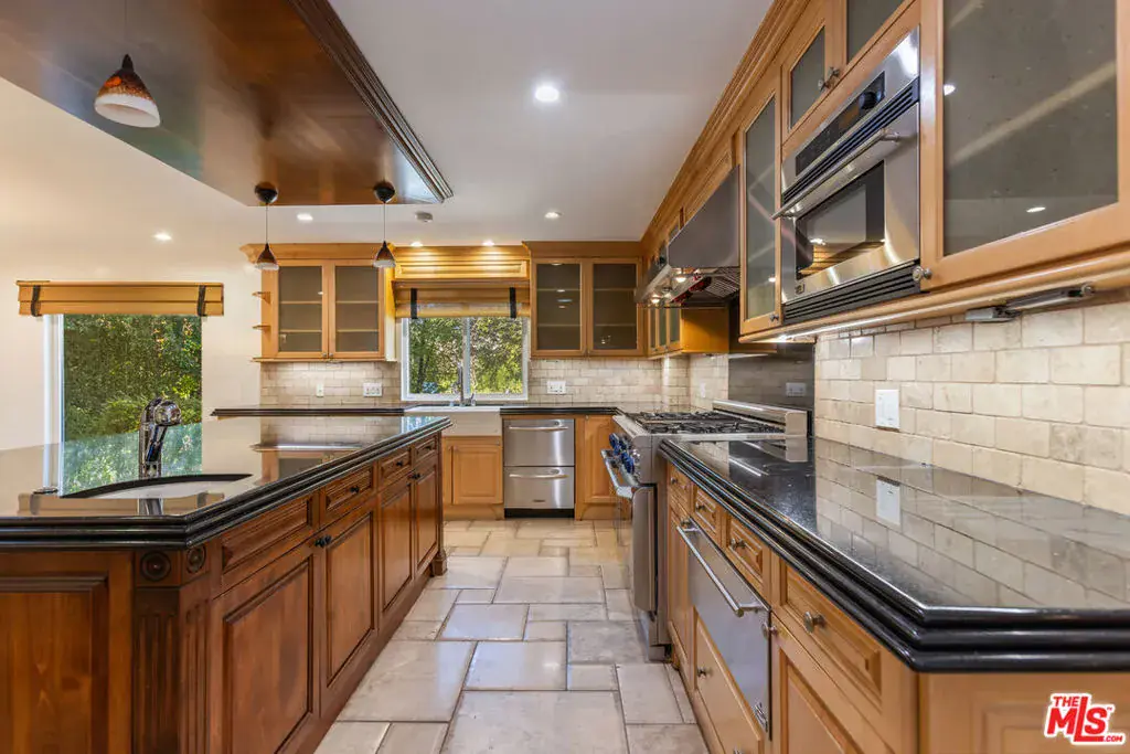 Tucked away on a quiet cul-de-sac in the Tarzana foothills just south of Ventura Blvd, this spacious residence offers 5 bedrooms and 4 bathrooms across more than 4,000 square feet on an expansive 16,000+ square foot lot. A welcoming horseshoe driveway leads to a two-car garage and an inviting interior filled with abundant natural light from large windows throughout. The custom chef’s kitchen anchors the home and flows easily into generous living and entertaining spaces, complemented by ample storage throughout the property. The backyard is ideal for both everyday enjoyment and gatherings, featuring a pool, spa, water feature, BBQ area, grassy play space, and multiple seating areas. The primary suite is set apart in its own private wing, accessed through a hallway lined with extensive storage cabinetry. The suite includes direct access to the backyard, a walk-in closet, and a spacious bathroom with separate tub and shower. Additional bedrooms are well-proportioned, and a conveniently located guest powder room adds functionality. On the opposite side of the home, a secondary wing offers a large versatile room suitable for a media room, recreation space, guest quarters, or home office, providing flexibility for a variety of lifestyles. Additional features include a whole-home water filtration system, solar, and a thoughtful floor plan designed for both comfort and functionality, all in close proximity to popular shopping, dining, and services along Ventura Boulevard.
