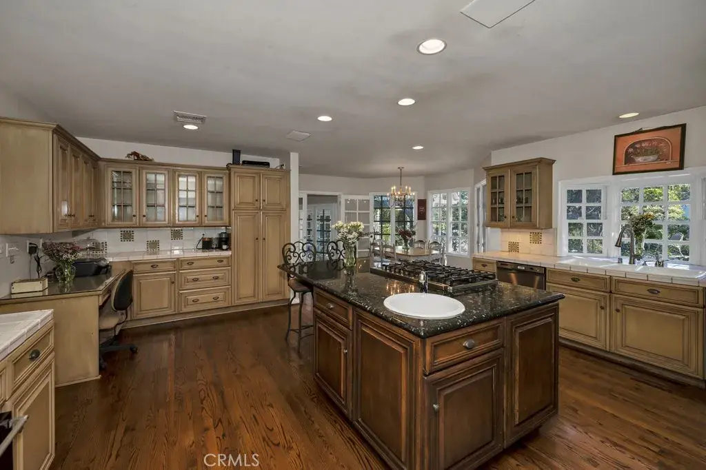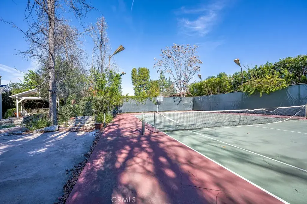 LOCATION, LOCATION! South of the boulevard in highly sought-after Tarzana, this rare single-story gated gem offers 4,320 sq.ft. of luxurious living space with 5 bedrooms, 3 full baths, a 3/4 bath, and a 1/2 bath. Soaring ceiling and double sided fireplace highlights the spacious living room. Primary Suite features a fireplace and adjacent den/reading room with built-in bookshelves, plus a cozy double-sided fireplace connecting to the living room. Primary bathroom with ample mirrored closet sliding doors, plus a separate shower and tub. Jack and Jill bathroom perfect for large families or accommodating guests. Additional room currently used as a game room, but also ideal as a family room or hangout space. Generous kitchen overlooks the backyard, pool, and tennis court- perfect for cooking while entertaining quests. Oasis backyard like a private resort, enjoy the fire pit on those cool nights, Relax, unwind and enjoy the serene outdoors in the beautiful gazebo. Location of this Gem is perfectly situated just minutes from the 101 Freeway, Tarzana Village , and Westfield Topanga for convenient shopping and dining. Don’t miss out! Priced to make this your dream home.