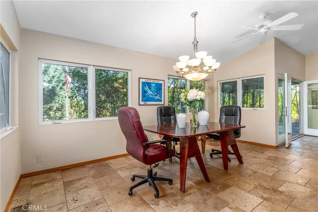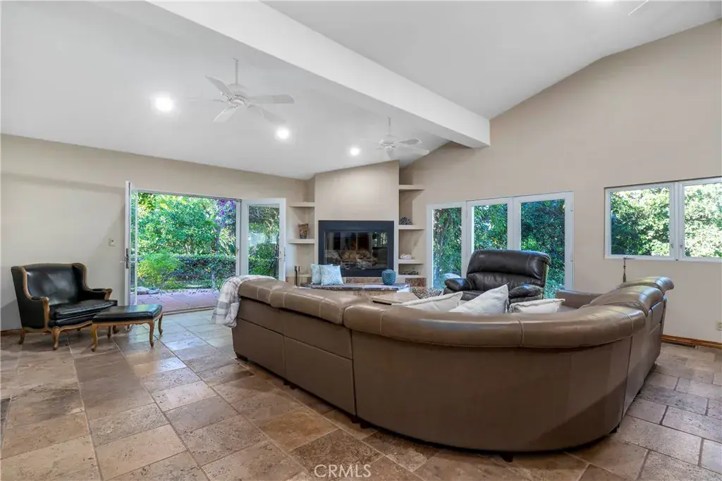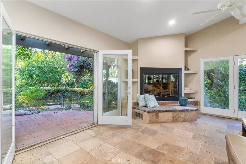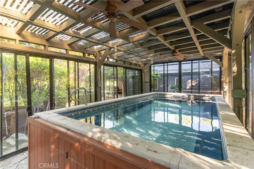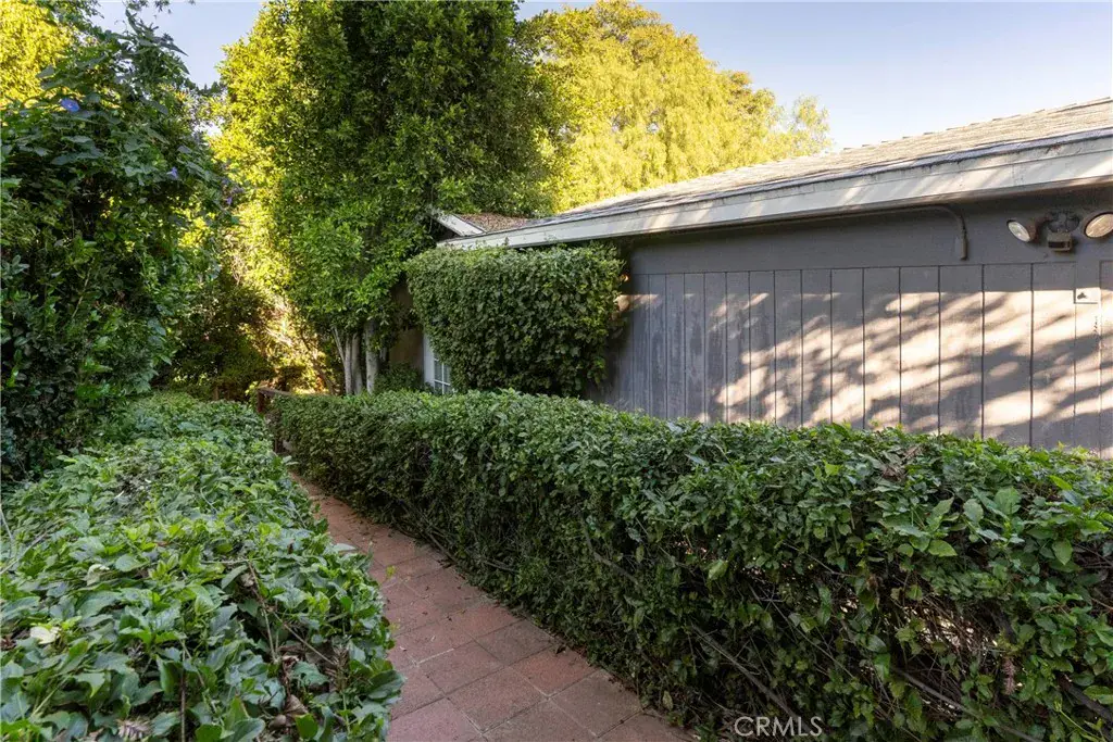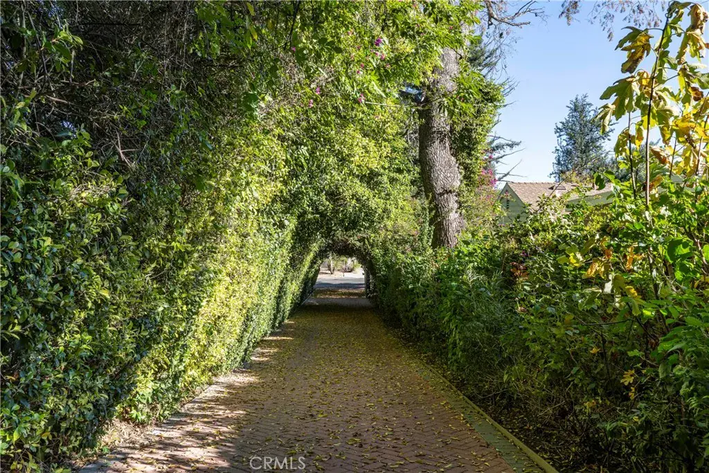 Tucked behind a private gate, up a long brick driveway on over 3/4 acre is a fabulous quiet rustic retreat. Unique single story in desirable Melody Acres. Relax on a huge 1000sf deck with gorgeous sunset views from a covered patio. Hilltop location. A beautiful Koi pond and river rock stream at the top of the long drive gives a serene and calming feel to the home. Amazing open concept with huge kitchen that has a 7′ island, beautiful Cherry custom cabinetry, Viking appliances and two dual temperature controlled wine units. Truly a focal point of the house. The kitchen opens to a large family room with 12′ ceilings and an oversized fireplace with loads of windows looking out over the private grounds. Primary bedroom has a beautiful updated bathroom with a large soaking tub, custom hand painted sinks, and separate shower plus two walk in closets. The third bedroom is currently being used as an office with gorgeous built-ins. Additionally, there is a guest unit behind the garage, approximately 300sf, with a separate bath and private entrance. Perfect for a live in or a gym. Exercise Pool in an enclosed area detached from the house. Whole house has SOLAR.