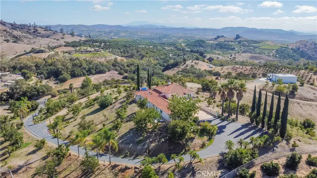 Welcome to 20491 Carancho Road, a private Mediterranean estate perched atop nearly nine acres of gently rolling, meticulously groomed land in the exclusive hills of De Luz. A long, scenic driveway winds through hundreds of producing avocado and lemon trees, leading you to a hilltop residence that captures panoramic 360-degree views of Temecula’s most picturesque landscape. This gated property offers unmatched privacy, resort-style amenities, and an atmosphere that feels worlds away—yet remains just minutes from Old Town Temecula, Wine Country, shopping, dining, and top-rated schools.