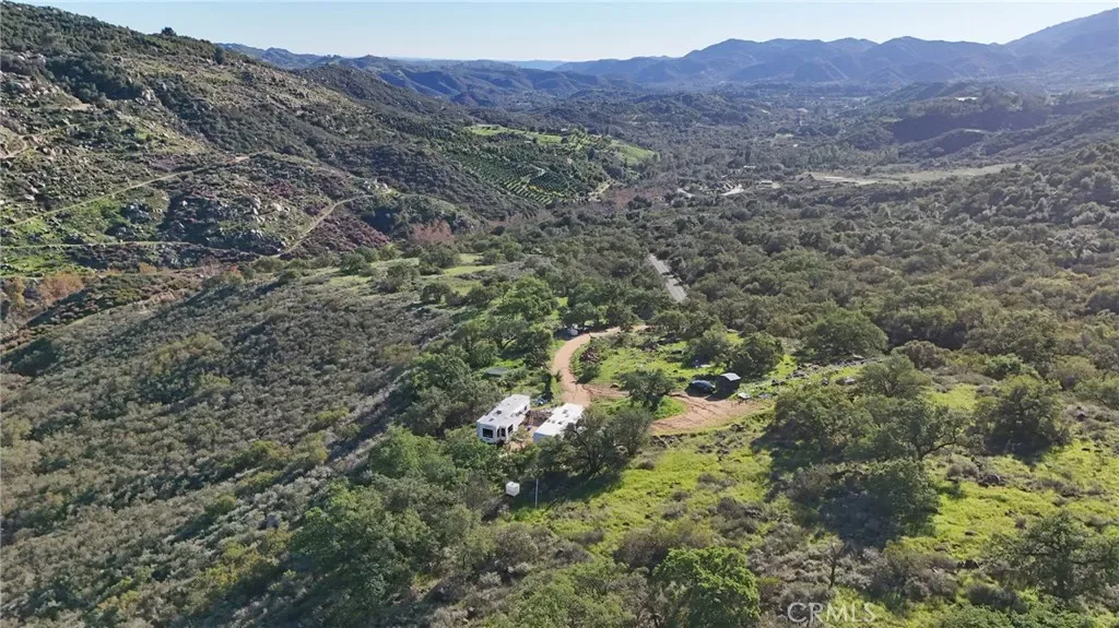 A perfect property for a private dream estate, this just-under-5-acre parcel is set in the coveted De Luz hills of Temecula, offering elevated views, ocean vistas on a clear day, and a serene, nature-rich setting. No HOA. Manufactured homes are ok and a minimum of 1,500 square feet residence per Riverside County. The land features multiple graded pads, an artesian creek, several huge oak trees along pads and creek, an existing driveway, and Rancho Water available in the street, making it highly usable and development-ready. Improvements include multiple water storage tanks, solar already in place with additional solar racks for future expansion, and two fifth-wheel trailers available for purchase separately at an additional cost. Mature oak trees and abundant vegetation enhance the landscape, ideal for a ranch-style or estate lifestyle. Multiple new luxury estates are currently under construction nearby, reinforcing long-term value. Located across from a 50-acre commercial flower farm, the property offers potential for agricultural use, subject to county approval, and is approximately 20 minutes from Old Town Temecula, Fallbrook, and Wildomar.