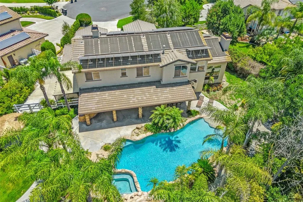 **COMING SOON**Welcome to Paradise! This incredible Meadowview POOL/SPA/SOLAR home features 5-bedrooms, 5 bathrooms, plus office, plus loft, plus pool house with 1 bathroom, plus saltwater pool/spa, plus BBQ, plus firepit, plus sport court. Step inside to a formal entryway, tall ceilings, crown molding, and natural lighting throughout. Downstairs includes an ensuite bedroom w/bathroom, office, formal dining room, formal living room, family room, Kitchen, & laundry room, and a secondary bathroom. Upstairs is huge master suite, dual sinks, vanity, his & her closets. Three other bedrooms, plus spacious loft. Features and upgrades include: Paid, adequately sized solar panels for electricity and pool. Seller receives credit from SCE annually. Enjoy more conveniences with a Whole house soft water system, circulating heat pump, whole house fan, built-in whole house vacuum, and dual air conditioners. The outdoor living space includes a beach entry saltwater pool, spa, water fountains, along with a pool house with shower & bathroom, Built in BBQ, fire pit, and sport court. Low Taxes & Low HOA. Community amenities include Equestrian Center, two pools, sps, tennis courts, pickleball courts, basketball courts, parks, event/recreation room, open space to ride horses, bikes, hiking trails and lovely mature trees. Centrally located to everything, from the Prominade Mall, to Old Town Temecula, to Wine Country, whilst still being tucked away and secluded from any hustle and bustle.
