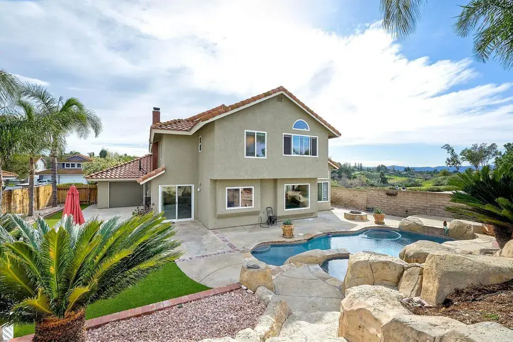 The perfect Valentine weekend present awaits you! Spectacular home with NO Mello Roos and NO HOA ~ on a well-manicured quarter acre corner lot, complete with Pebbletec saltwater pool, spa and soothing waterfall. This IS the entertaining home you’ve been seeking and homeowners made multiple “smart” improvements over the course of their ownership! 26 OWNED solar panels (2021), new roof AND underlayment (2021), newer dual paned Amco windows (2018), new furnace and AC (2023). Chimney and fireplace have just been revitalized and cleaned ($8,000). Pool and spa READY for you to enjoy: Heater replaced in 2020, primary pool pump & water filter & wireless automation installed 2022, water feature pump replaced Dec 2025, Salt cell replaced 2024, Salt cell motherboard replaced 2026. Pride of ownership abounds in this four BR PLUS BONUS room home, of which entry level BR and full bath are perfect for guests and/or an office. The “bonus” room could be converted back to a bedroom, but WHY? A great media room, exercise room, children’s play & study room ~ countless options. Interior just repainted in calm neutral tones. This serene location puts you onto the I-15 in less than 15 minutes, close to a plethora of restaurants and shopping options, not to mention countless opportunities to explore the vineyards of Temecula.