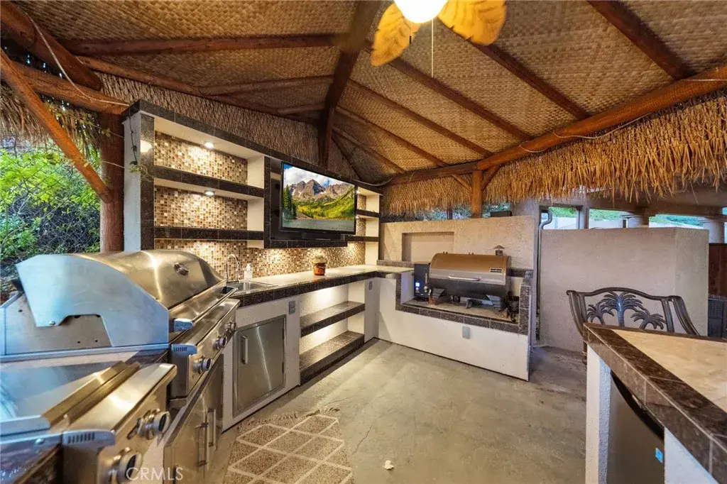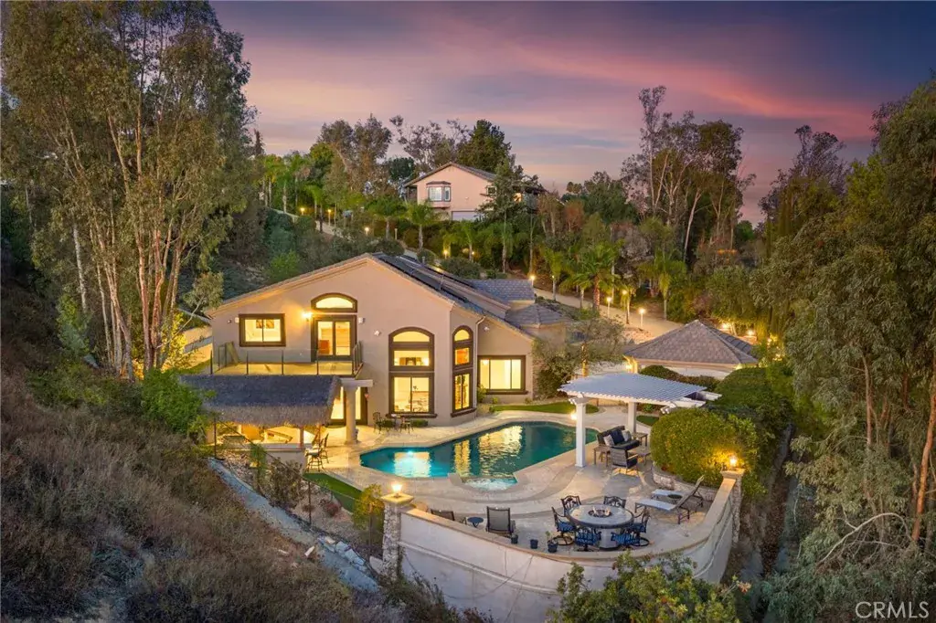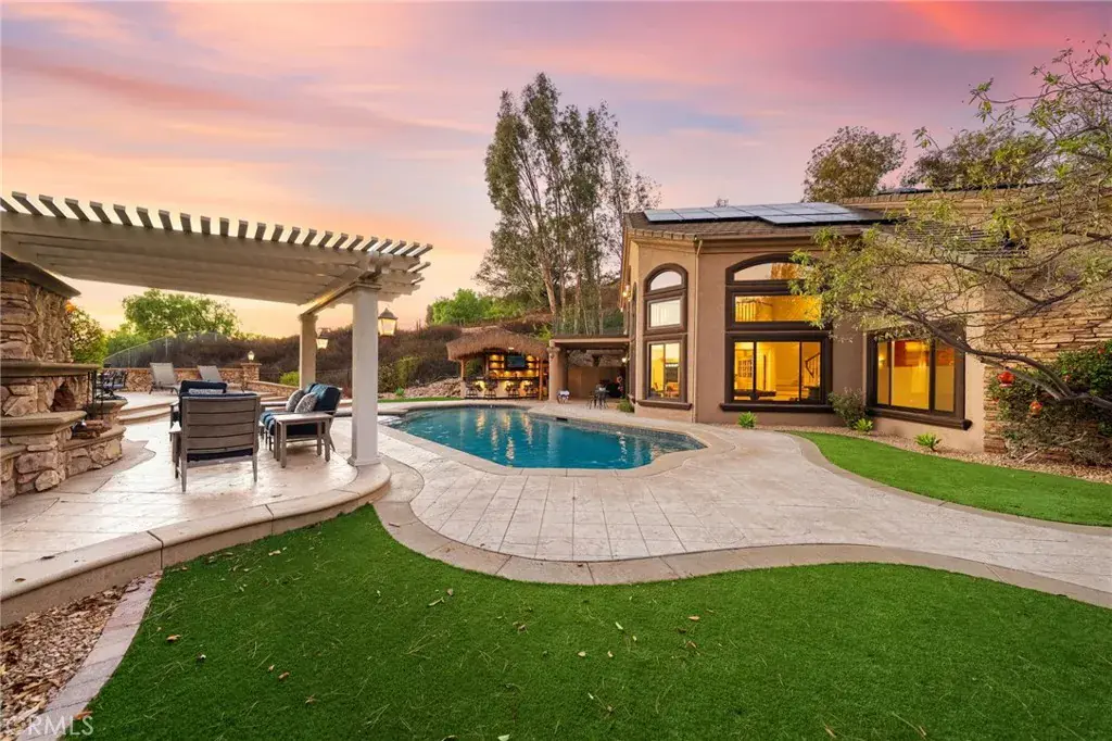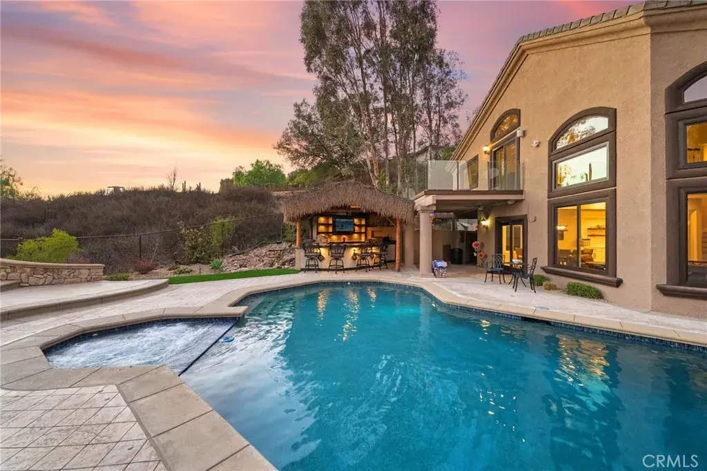 Welcome to your dream home in the highly sought-after Meadowview community—where privacy, elegance, and Southern California charm converge. This stunningly upgraded home offers 5 spacious bedrooms and 4 beautifully appointed bathrooms, perfectly designed for comfort, functionality, and upscale living. From the moment you arrive, you’ll be captivated by the home’s refined curb appeal and meticulous attention to detail. Inside, discover an expansive open-concept layout filled with natural light, high-end finishes, and seamless indoor-outdoor flow—ideal for both everyday living and elevated entertaining. The designer kitchen, complete with premium appliances, custom cabinetry flows seamlessly between the dining and family room. A towering great room and multiple living spaces provide the perfect backdrop for gatherings both intimate and grand. Step outside to your private backyard resort—an entertainer’s paradise. Unwind or host under the stars with a sparkling custom pool, incredible outdoor fireplace, and fully equipped bar and BBQ area. Whether you’re hosting summer soirées or quiet family evenings, this outdoor retreat is truly unmatched.