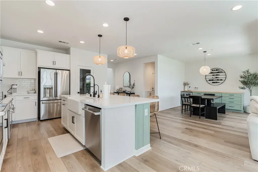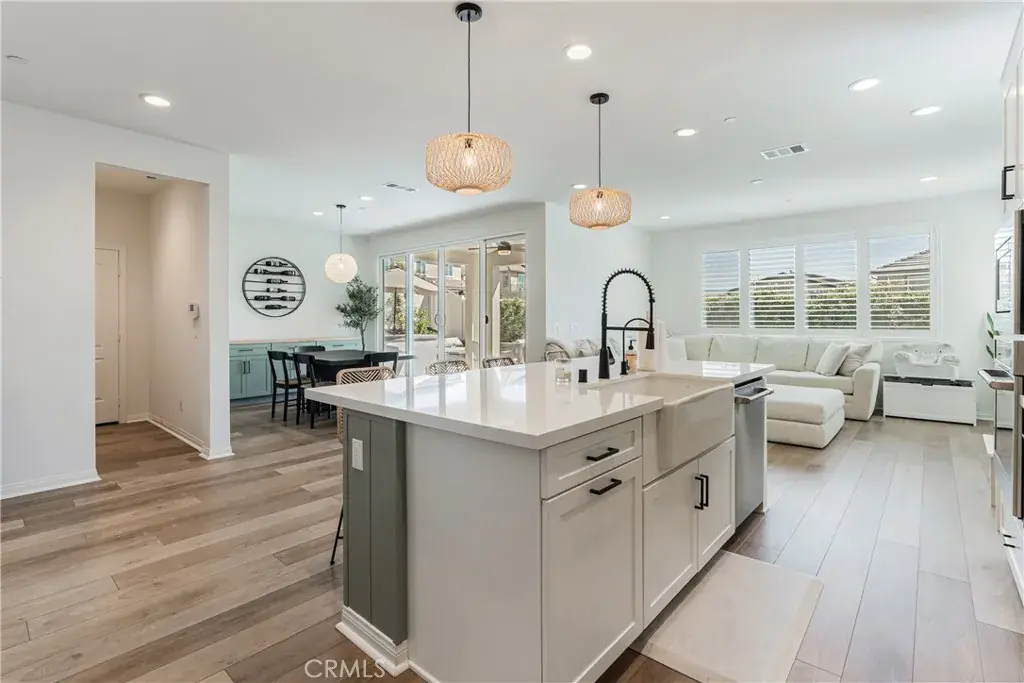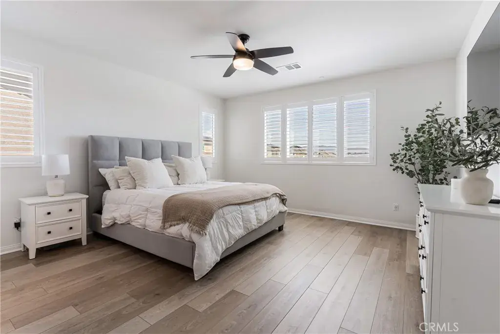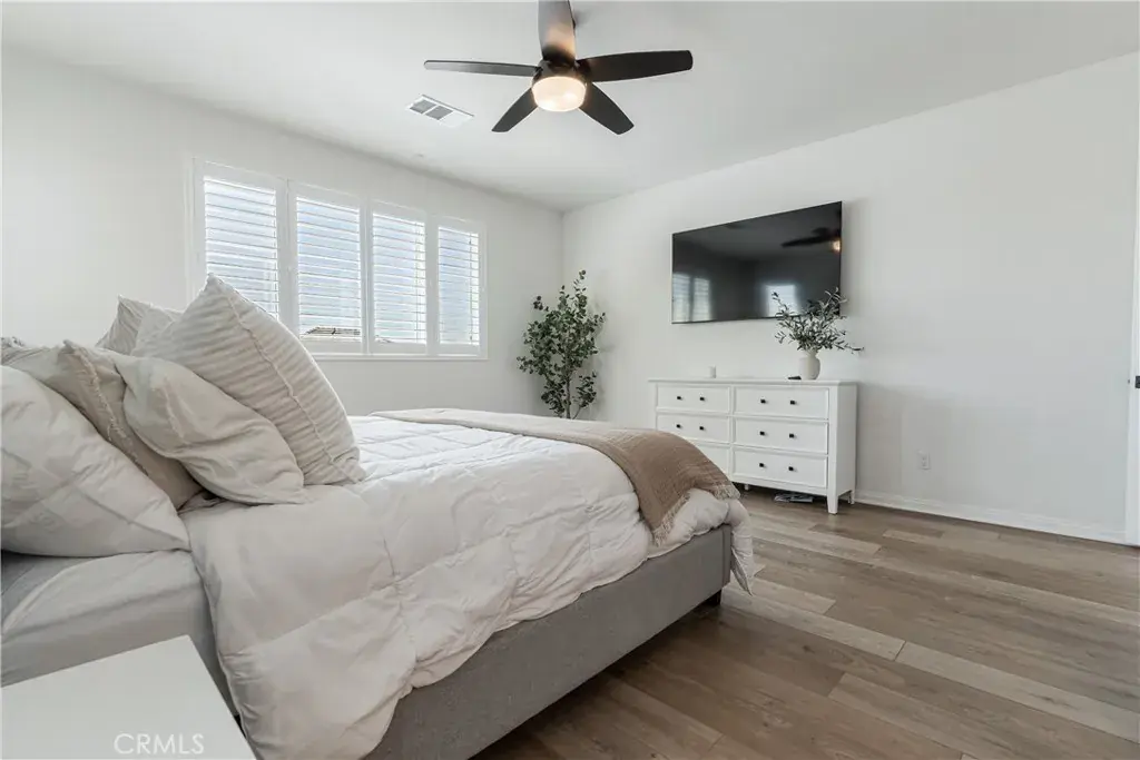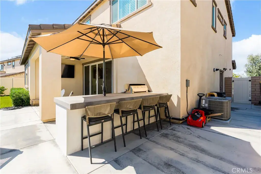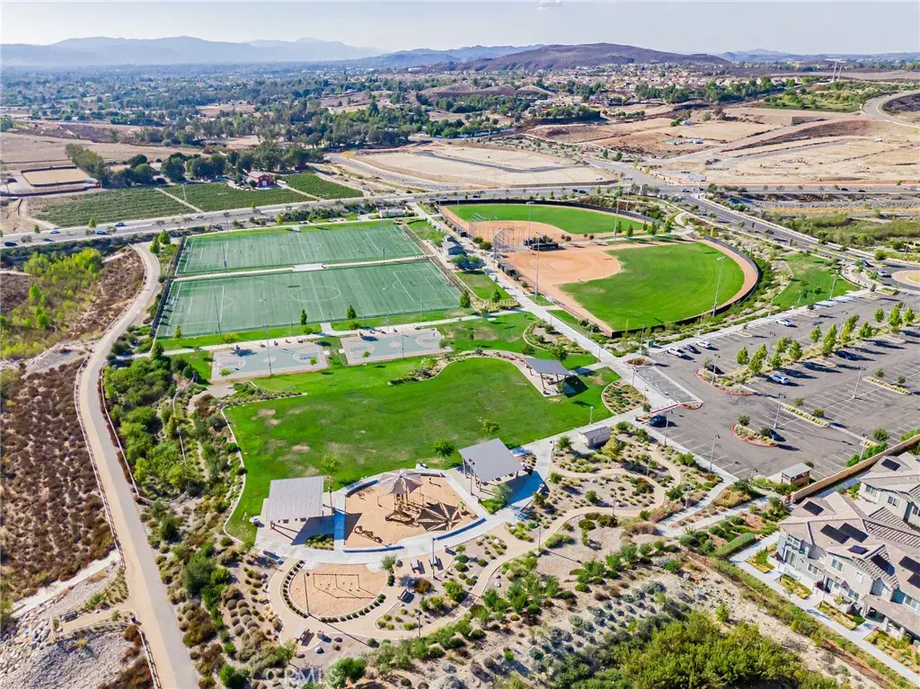 Welcome to your new home in Temecula’s master planned community of Sommers Bend, where modern living meets thoughtful design. This remarkable 4-bedroom, 3-bathroom home offers a turn-key & move-in-ready experience. From the moment you arrive, you’ll feel a sense of space and tranquility, thanks to the single-loaded street out front elevating this home’s curb appeal with uncrowded views of the vast hills across the street and stunning mountains in the distance. Step inside and notice the natural flow of the open-concept layout, designed for both daily life and effortless entertaining. Every detail has been carefully considered, from the high-end quartz countertops and soft-close cabinetry to the stunning fireplace with a custom mantle that anchors the living area. The kitchen is a chef’s dream, featuring a gorgeous large center island with shiplap accent, counter seating, pendant lighting, farmhouse sink, stainless steel appliances, tile backsplash and large walk-in. The home offers incredible versatility. There is a desirable downstairs bedroom & bathroom perfect for family or a guest room. Upstairs, a spacious enclosed loft with elegant French doors provides the perfect flex space for a home office, media room, or even an extra bedroom. The primary suite is a true sanctuary, complete with a beautiful barn door that opens to a luxurious, spa-inspired bathroom. Step outside to a private low maintenance backyard which is perfect for year-round enjoyment and entertainment. The elevated lot provides incredible privacy, as the home sits high above the rear neighbors. Featuring a covered patio, a custom-built BBQ island with counter seating, artificial turf, retaining wall, extra hardscape and ambient low-voltage lighting to set the mood and tons of blue skies to give you a wonderful vantage from all over. There are two dwarf lemon trees, a naval orange, a Texas grapefruit, a lime and a mandarin tree neatly manicured and at your disposal. Enjoy modern comforts with a fully paid solar system, stylish plantation shutters throughout, LVP flooring, epoxy garage finish, EV charger hook-ups, and premium Delta matte black fixtures that add a sleek, consistent touch throughout. As a resident of Sommers Bend, you’ll also have access to exceptional community amenities, including resort-style pools, amazing clubhouse, fitness center, state of the art sports parks, and scenic trails—all just minutes from Temecula’s best wineries, dining, and Temecula’s top-rated schools!