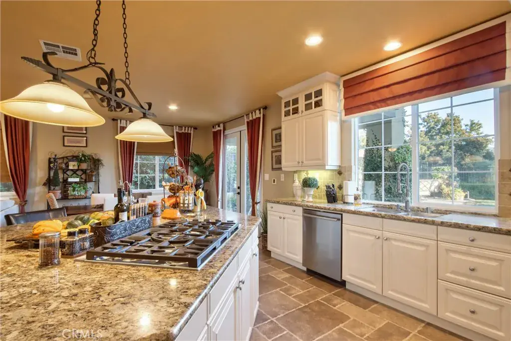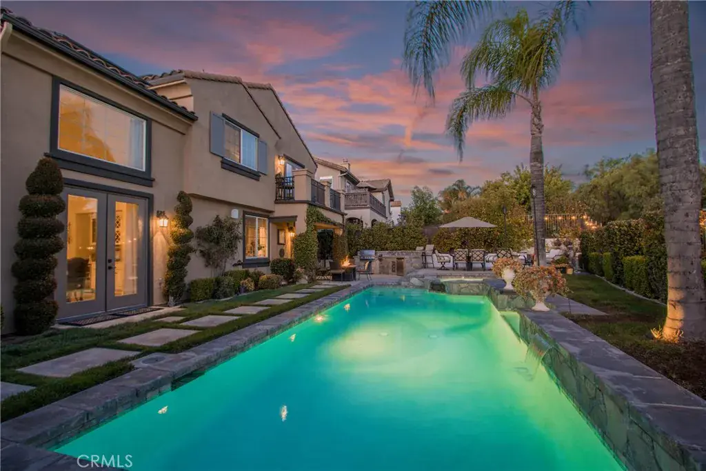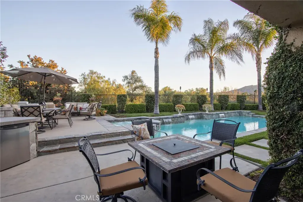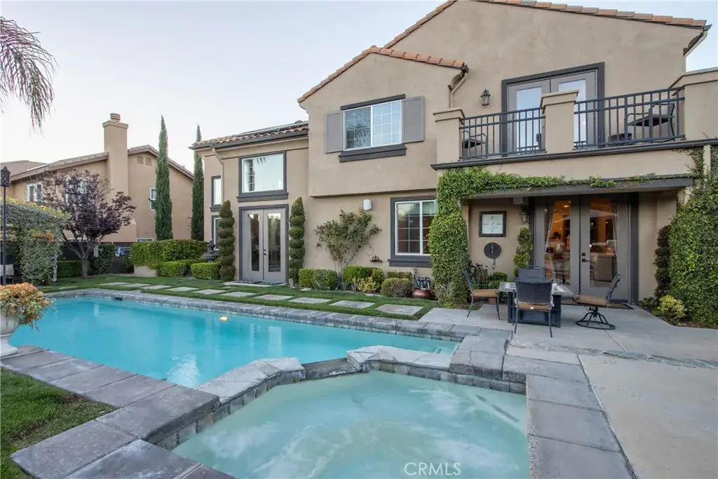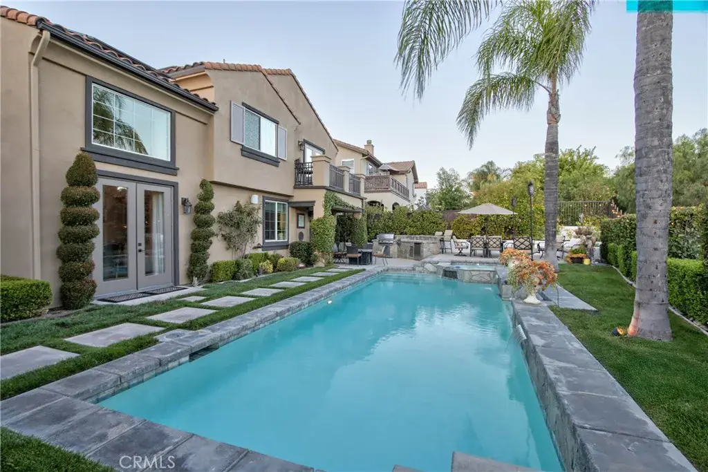 Welcome to the highly coveted gated community of the Fairways in Redhawk. This well appointed Italianate home has PAID SOLAR and no direct front facing neighbors and the back views to the third fairway of the Redhawk Community Golf Course and the beautiful Palomar Mountain. Enjoy cool backyard breezes due to the prime elevation of the home alignment to the Rainbow Gap. You will fall in love with the spacious and open floor plan. Step inside the glass wrought iron double doors to a grand formal entry and living/dining room with high volume ceilings. The heart of the home is the kitchen featuring a large center island, granite counter tops, glass mullion cabinetry, stainless steel dual ovens and a DCS 5 burner gas cooktop. The kitchen flows seamlessly into the open concept family room and informal dining room offering a fireplace and french doors that open to the back yard. The home has been highly upgraded with custom built in cabinetry throughout and designer touches. Surround sound speakers hardwired throughout most of the home interior and backyard with central volume controls which provide a great addition for holidays and entertainment. Delight in year round outdoor entertaining in the resort style backyard; with your own private saltwater pool, spa and a custom built outdoor kitchen featuring a natural gas barbecue, cooktop and refrigerator. The backyard has been landscaped to perfection with several areas to relax and enjoy the views. The interior of the home features 4 bedrooms and 3 bathrooms, including 1 bedroom/bath downstairs for multi generational living and an upstairs open loft. The primary bedroom suite is a true retreat with volume ceilings and a large private outdoor balcony. The spacious primary bath features a walk in closet and built in dresser for additional storage. Enjoy soaking in your large jacuzzi tub after a long day and the ample space provided in the large over sized built in dual bathroom vanity. The 3 car garage has been upgraded with epoxy coating and multiple cabinets. In addition, the home has been equipped with a central vacuum system throughout the home to make cleaning a delight.