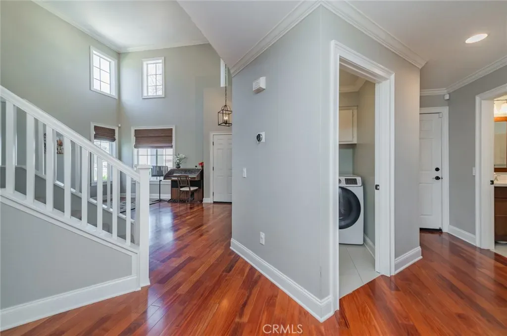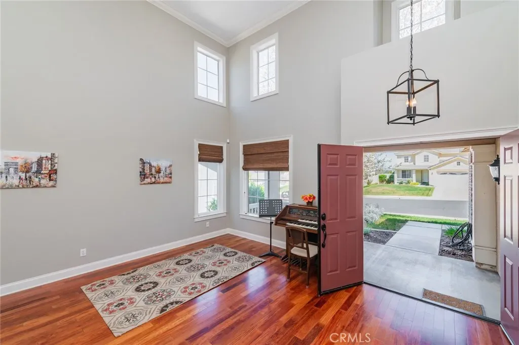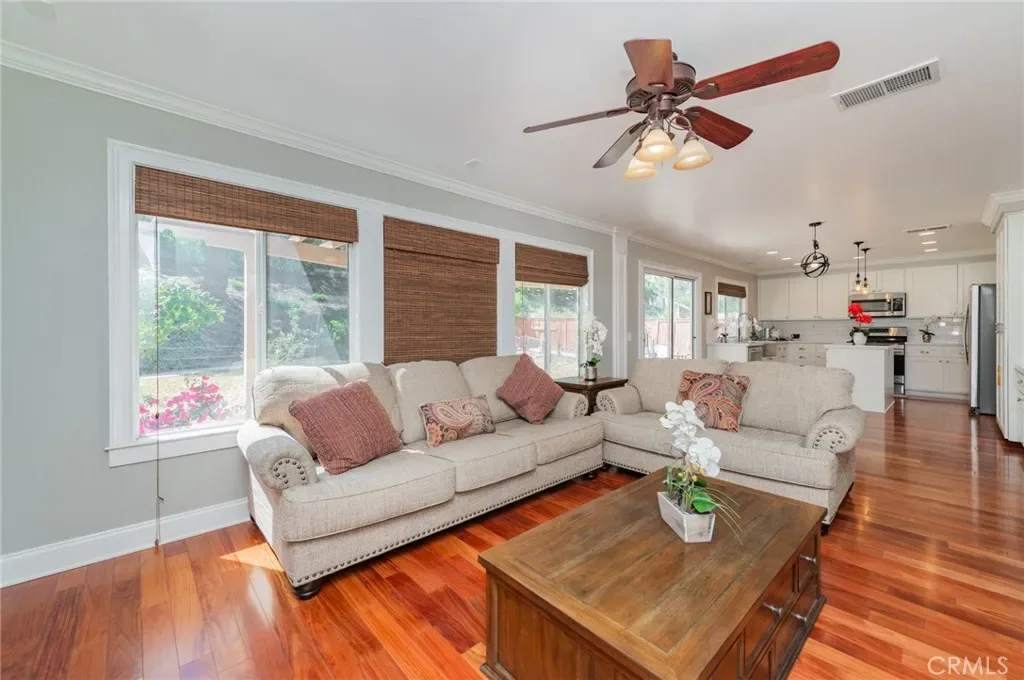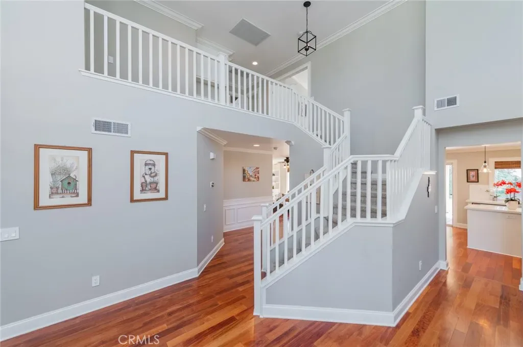 Welcome to this beautiful 4-bedroom residence with an expansive upstairs loft, ideally situated in the Vail Ranch Community within the Redhawk area of South Temecula. Nestled in a peaceful Temecula Valley neighborhood, this home offers 2,371 sq ft of living space on a 10,890 sq ft lot. This home features a bright, open floor plan with soaring ceilings, a double-door entry, cherry wood flooring on the main level, and crown molding throughout. The first floor features formal living and dining areas, a family room with a ceiling fan and built-in entertainment, and a bedroom with a full bath, ideal for guests. The updated kitchen features white European-style cabinetry, quartz countertops, an island, recessed lighting, and a stainless-steel farmhouse sink. Upstairs, the primary suite includes a double-door entry, a ceiling fan, a walk-in closet, dual vanities, a soaking tub, and a separate shower. Two additional bedrooms and a spacious loft, each with a ceiling fan, complete the upper level. Enjoy energy savings with PAID-OFF SOLAR PANELS and a house attic fan, and entertain in the backyard with room for a pool, fruit trees, and a patio cover. NO HOA, low property taxes & NO Mello-Roos. Conveniently located near Great Oak High School, shopping, dining, Temecula Wine Country, Old Town, and Pechanga Resort Casino. Don’t miss this amazing opportunity.