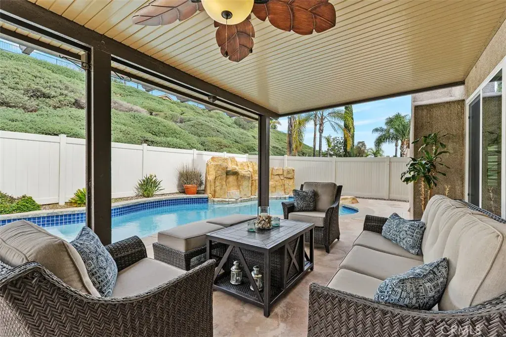 This Meticulously Maintained 5 Bedroom Pool Home is tucked away on a quiet cul-de-sac in the desirable California Tradewinds Community, just minutes from everything Temecula has to offer. With 3,099 square feet of spacious living, the main level features a formal living room and formal dining room, a guest bath, laundry, super-sized pantry, kitchen, and an inviting family room with plenty of room for movie nights, games, and relaxing together. The expansive kitchen will impress any home chef with abundant storage, generous granite counter space, a granite topped center island with seating, and a dedicated workspace, while still leaving room for a full-size dining table, making it ideal for everyday living and entertaining. Step outside and enjoy your own private backyard retreat! Dine al fresco poolside, unwind in the spa, and soak up the Sunny Temecula Lifestyle year-round. Whether you are hosting weekend get togethers or enjoying a quiet evening under the stars, this backyard is designed for both fun and relaxation. Upstairs, you will find 5 generously sized bedrooms and 2 full bathrooms. The primary suite is a true sanctuary, complete with a sauna, a beautifully remodeled en-suite bathroom, and large walk-in closet. A second full guest bath down the hallway serves the additional 4 bedrooms with comfort and convenience. Move-in ready, Low HOA and a list of improvements upon request. Close to Schools, Shopping, Entertainment, Hiking, Horse Trails, Biking, Temecula Wine County, Golf, The Famous Temecula Old Town, Vail Ranch, and Pechanga Resort!
