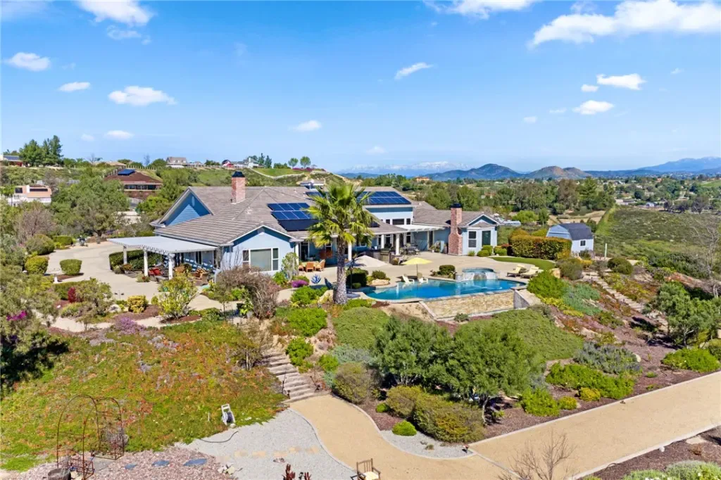 A One of One Wine Country Estate with views unlike any other…. Perched in the heart of wine country, this one of a kind single story estate offers some of the most breathtaking, unobstructed views the region has to offer, including sweeping views of Palomar Mountain that must be seen to be believed. Nearly every window frames a picturesque backdrop, creating a seamless connection between indoor living and the natural beauty beyond. Thoughtfully designed with an ideal floor plan, the home positions the primary suite to capture stunning backyard views, providing a private retreat that feels both serene and luxurious. On the opposite wing, a fully functional guest suite—or potential attached ADU—offers exceptional flexibility with its own living room, bedroom, bathroom, and private entrance. This space can remain connected to the main home or be easily separated for multigenerational living, guests, or income potential. The interior is equally impressive, featuring a show-stopping dining room, two additional bedrooms with en suite bathrooms, and a spacious walk-in pantry. The expansive entertainer’s kitchen opens effortlessly to both the family room and a casual dining area, making it ideal for hosting and everyday living alike. Car enthusiasts and hobbyists will appreciate the oversized 4-car garage, while recent upgrades such as a brand-new water heater and solar—including pool solar adding efficiency and value. Step outside to your private resort-style oasis, complete with an infinity-edge pool and spa perfectly positioned to soak in the panoramic views. Beyond the main residence, the property truly shines with its land and limitless potential. A second driveway leads to a separate graded pad with incredible views—ready for a future ADU, workshop, or RV garage. This same driveway welcomes you to a tranquil Zen garden featuring a putting green, chipping area, walking trails, multiple seating areas, and mature landscaping—all designed to maximize the property’s unmatched scenery and peaceful ambiance. Fully gated and fenced, this estate offers privacy, versatility, and endless opportunity in one of the most desirable wine country locations. With so much to offer and priced to sell, this is a rare opportunity you won’t want to miss. Schedule your private tour today and experience these extraordinary views for yourself.