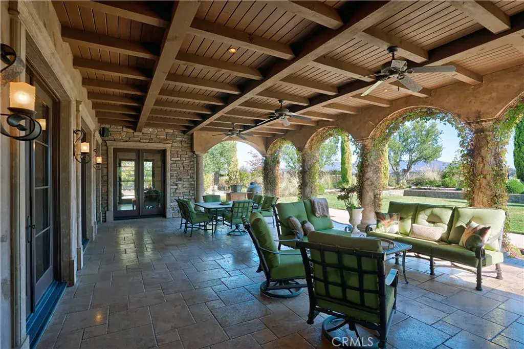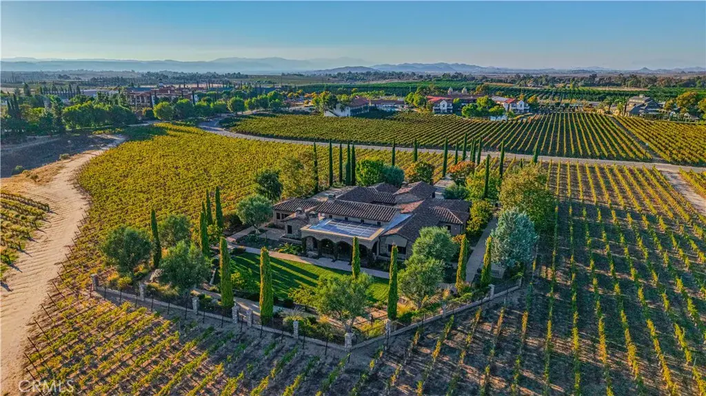 Experience refined luxury in this stunning Ponte Estates residence surrounded by Temecula’s iconic vineyards and breathtaking mountain panoramas. This exceptional 5,391 sq ft, 3-bedroom, 4-bathroom home combines timeless craftsmanship with high-end modern technology, delivering the ultimate wine-country lifestyle. Located in one of the most desirable areas of Temecula Wine Country, this home is within walking distance to three of Temecula’s most prestigious wineries—Ponte, South Coast, and Wiens. Enjoy the ease of strolling to Ponte Winery, Ponte Vineyard Inn, and the Ponte Cellar, as well as indulging in fine dining right at Ponte’s celebrated restaurant. Inside, the home features soaring vaulted, beamed ceilings, exquisite custom alderwood cabinetry throughout, and elegant travertine tile flowing through the interior spaces and outdoor patios. Pocket doors allow you to separate living areas gracefully, while plantation shutters inside and storm shutters outside provide comfort, beauty, and added protection. A complete water filtration system, copper rain gutters, whole-house intercom system, and meticulous details throughout showcase quality at every turn. Energy efficiency and reliability are enhanced by a paid 30 panel solar system with battery backup. This true smart estate is equipped with an advanced Control4 system, allowing seamless control of every light in the home, the gated entry, and the entire security system. Outdoor living is unmatched, with expansive patios offering 360-degree views of vineyards, rolling hills, and the surrounding mountains—the perfect backdrop for serene mornings, unforgettable sunsets, and wine-country entertaining. A rare opportunity to own a meticulously crafted estate in the heart of Temecula Wine Country, surrounded by luxury, convenience, and world-class experiences just steps from your door.