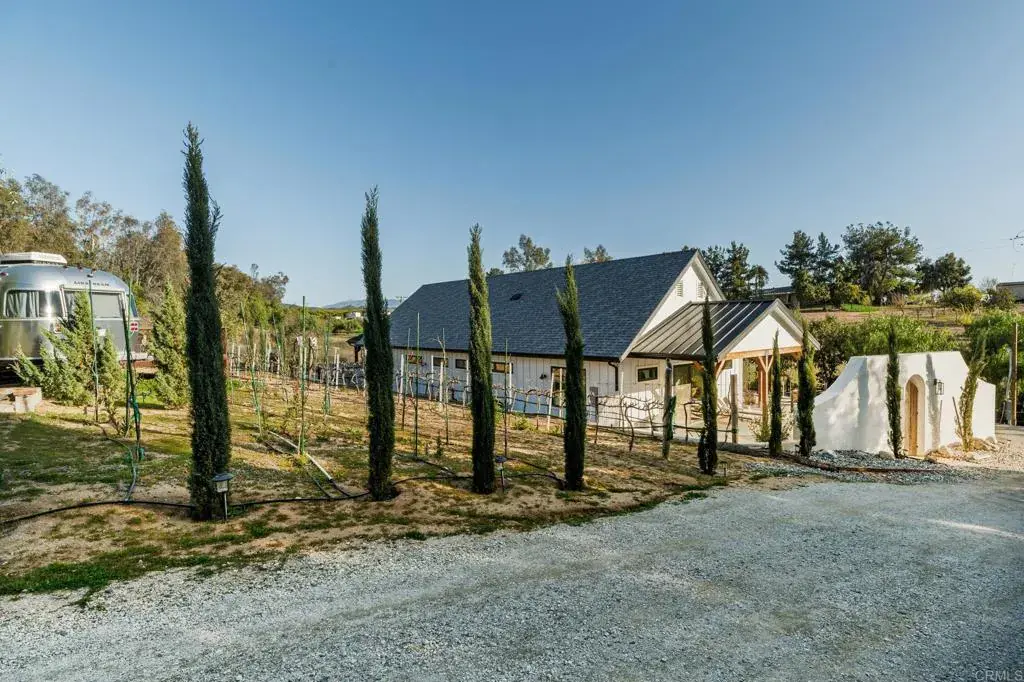 This stunning estate perfectly blends Temecula wine country living with a rare opportunity for fabulous rental income, all on 2.72 acres. Featuring a spacious 3,082 sq ft, 4-bed + office/3-bath main home, plus 4 newly constructed 1-bed/1-bath units totaling an additional 1,945 sq ft, these modern “casitas” were designed with an impeccable eye for style, functionality and rental income or luxurious guest accommodations. Enjoy them as they are now, or they can be easily converted into two duplex units. As you enter the property through the charming gated entrance, you’ll appreciate the privacy and spaciousness for all things recreational. With your own sparkling pool, top-of-the-line solar systems, RV parking and actively producing vines, you’ll never want to leave your private retreat. Upon stepping into the main home, soaring ceilings and travertine floors guide you to the expansive great room with an inviting wood-burning fireplace. A custom entertainer’s kitchen awaits with stainless steel appliances, granite countertops, a Sub-Zero fridge, a 6-burner stove, and a wine fridge. An additional space for formal dining with another stone fireplace greets you at the end of the kitchen. The entry level also includes an office or additional bedroom, a full bath, and laundry room. The custom wrought iron staircase leads to the second floor, where the primary suite and 3 guest bedrooms, plus a guest bath, await. The primary suite boasts an oversized bath with a steam shower and a private balcony with views for days. The backyard off the main home offers a seamless transition to outdoor living with built-in BBQ area and an expansive brick pool deck. Across the property, a long path leads you to the 4-unit casita structure, tucked away for ultimate privacy. Completed in 2022, this licensed Airbnb offers both short- and long-term stays for those looking to explore all that picturesque Temecula has to offer. Let us welcome you home today!