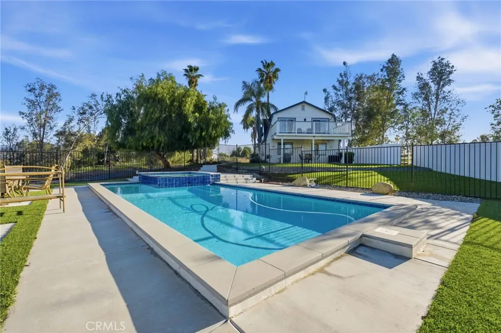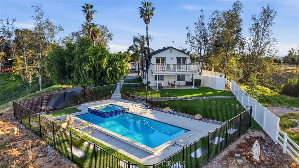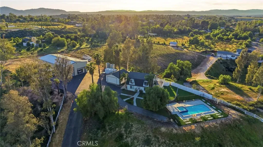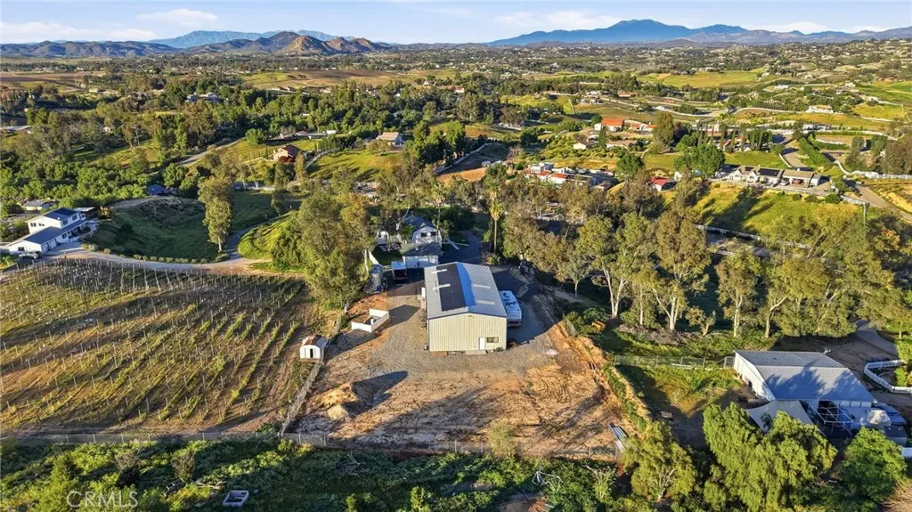 Welcome to 35835 Meadow Ridge, a truly unique property situated on 2.73 acres in the heart of Temecula Wine Country. This privately gated and fully fenced estate offers privacy and space. It is located directly behind South Coast Winery and just minutes from wineries, restaurants, golf courses, Old Town Temecula, and Pechanga Casino. The recently renovated home features 3 bedrooms and 2 bathrooms upstairs. All bedrooms enjoy scenic views, and a large, expansive deck creates the perfect space to relax or entertain. The property also includes an impressive 3,200 sq ft steel building measuring 40×80 feet, with 23-foot ceilings, a 23×23 loft ideal for storage, and a half bathroom. The building is fully insulated and equipped with a 5-ton air conditioning system and an electric heating element. It has a 400-amp electrical panel powered by over 15 kilowatts of solar panels owned in full. Within the building is a 1,000 sq ft ADU featuring a kitchen, open living space, 1 bedroom, and 1 bathroom with dual vanity, shower, and soaking tub. The ADU has its own separate 2-ton high-efficiency air conditioner. The outdoor space is equally impressive, with a brand-new pool built in 2022, fully fenced, and equipped with both electric and propane heating. The usable acreage offers ample space for a vineyard or other uses. The paved road provides easy access to town. Additional highlights include no HOA, low taxes, and location within the highly desirable Temecula School District. Don’t miss this rare opportunity to own a versatile wine-country property that combines privacy, functionality, and a lifestyle.