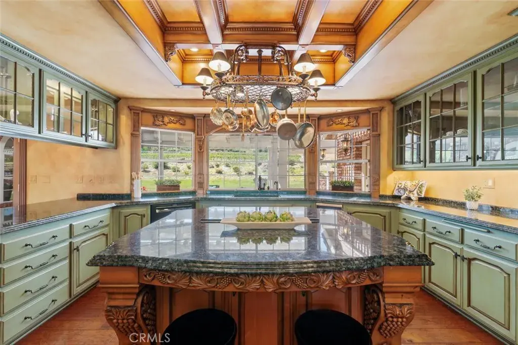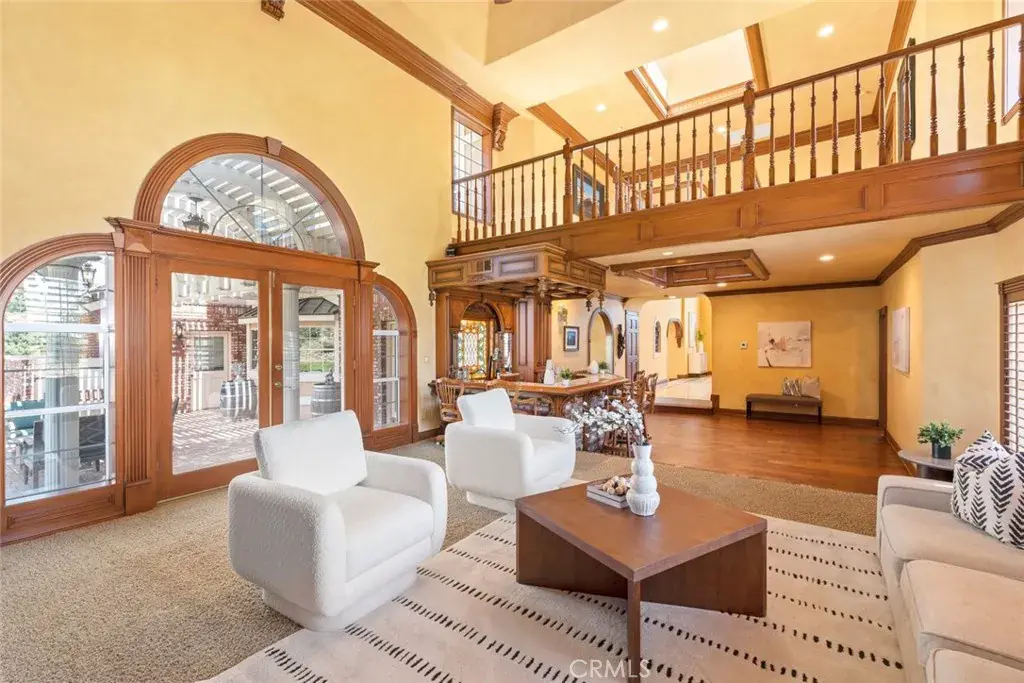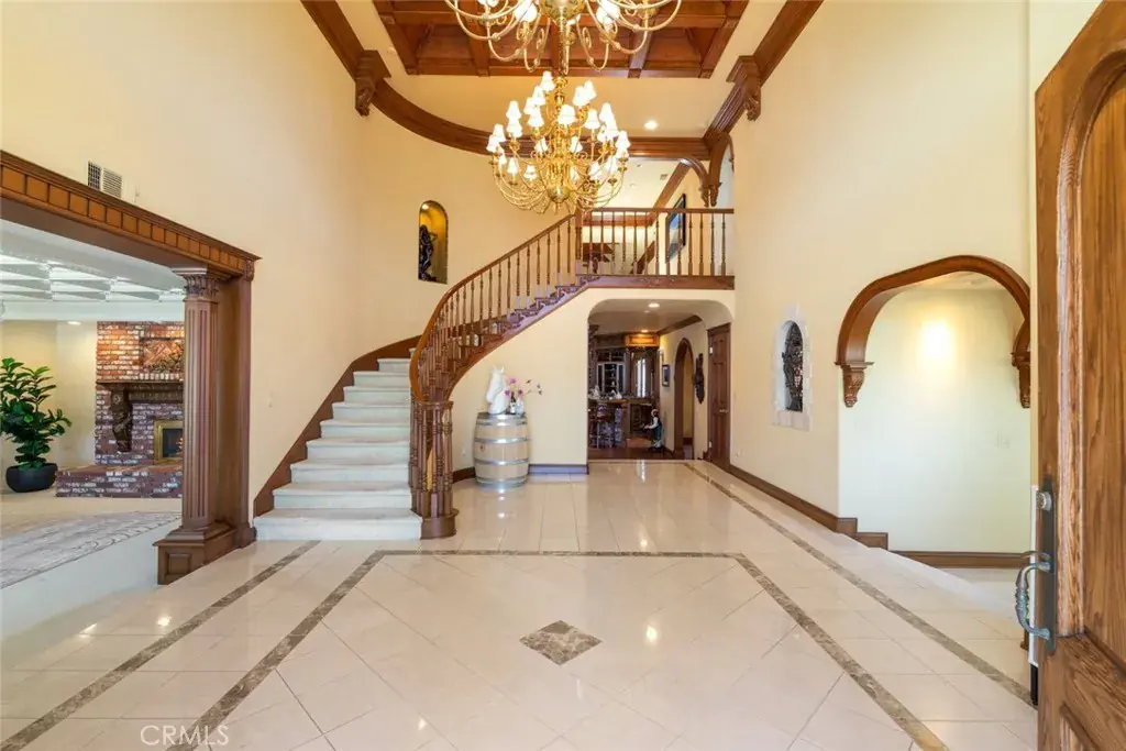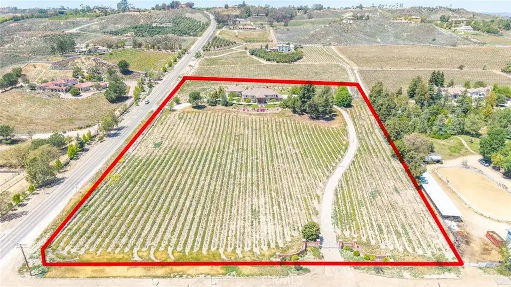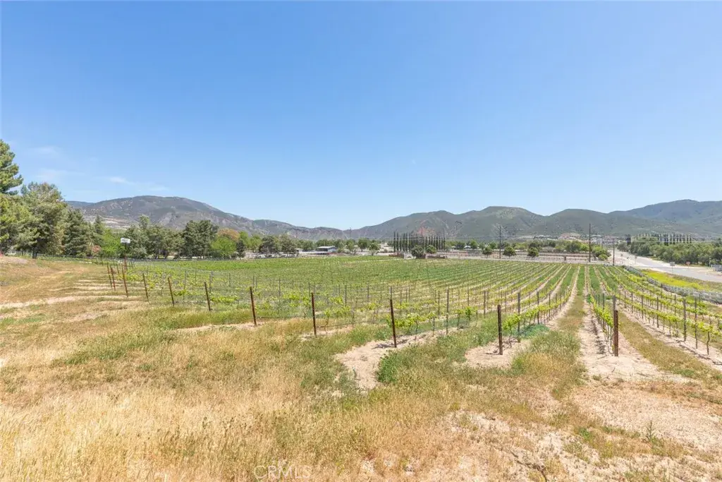 Nestled in the heart of Temecula’s prestigious Wine Country, this extraordinary vineyard estate is a celebration of refined living, panoramic beauty, and the art of winemaking. Set high on the hilltop, this residence overlooks your very own working vineyard, flourishing with Cabernet, Syrah, Merlot, Muscat, Petite Syrah, and Primitivo varietals—an exceptional opportunity to embrace the vintner lifestyle. Step through a grand single entry into a world of timeless elegance. The dramatic foyer welcomes you with two breathtaking chandeliers, a gracefully curved staircase, and vaulted ceilings adorned with rich wood beams, all bathed in natural light. Thoughtfully designed for both comfort and sophistication, the home features a chef’s dream kitchen—ideal for gatherings both intimate and grand—alongside an expansive bar and open-concept living spaces that flow effortlessly throughout. A beautifully customized library/office on the main floor offers a quiet retreat, complete with rich wood shelving and fine craftsmanship. The layout includes a spacious downstairs bedroom with a full bathroom, perfect for guests or multi-generational living, along with an elegant powder room for visitors. Upstairs, a square catwalk offers sweeping views into the magnificent great room below and leads to four generously sized bedrooms, each filled with natural light and designed for comfort. The primary suite is a true sanctuary—boasting serene views of the vineyard, a cozy sitting retreat with fireplace, and a spa-like ensuite bath. Enjoy a luxurious soaking tub, walk-in shower, dual vanities, and a large walk-in closet, all creating the ultimate place to unwind. A secondary dwelling above the detached garage currently serves as a private winemaking room, but offers endless potential as a guest suite or creative space. Every detail of this home exudes luxury, privacy, and lifestyle. Whether you envision a boutique wine label, a family estate, or an entertainer’s dream, 37028 De Portola Road delivers the very best of Temecula Wine Country living.