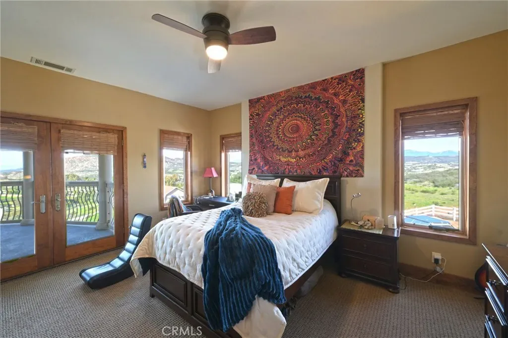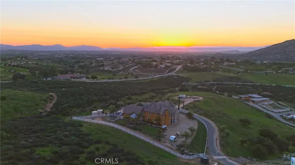 Set in the heart of Temecula Wine Country just east of Wilson Winery, this stunning 6+ acre custom estate offers 360-degree views, privacy, and incredible versatility—just 5 minutes to world-class wineries. The main villa features custom cabinetry throughout, imported tile on the staircase and restrooms, multiple balconies for sunset views toward the Santa Rosa Plateau, and a chef’s kitchen with Viking appliances and granite counters. Approx 800 sq ft loft over the garage with kitchenette adds flexible living space (combined living area over 4,900 sq ft). Active short-term rental license for the main residence plus a detached 2 bed/2 bath guest house (approx 1900 sq ft). Property includes three graded pads for barns, arenas, pool, or future improvements, plus two 2,500-gallon water tanks and fire hydrants installed. Fencing around the main house is already in place. No HOA. Paid solar and leased propane system. A rare Wine Country offering with lifestyle, income, and long-term upside.