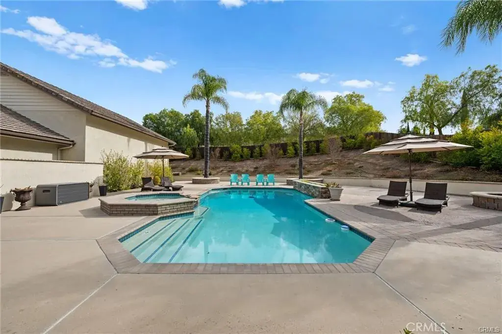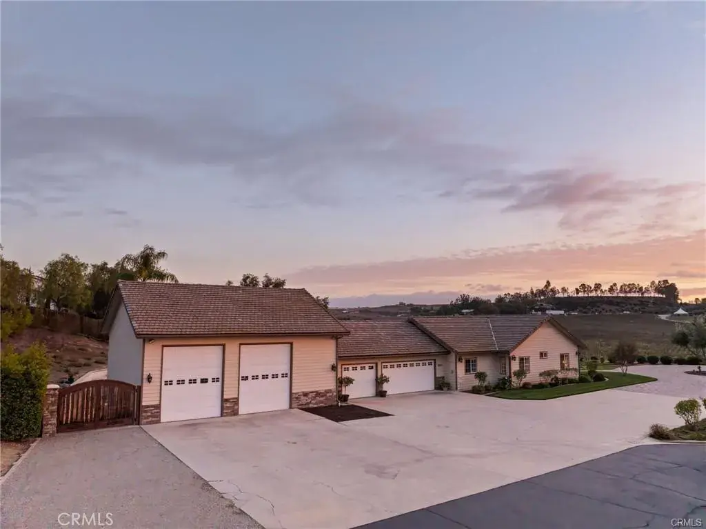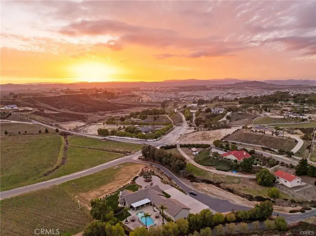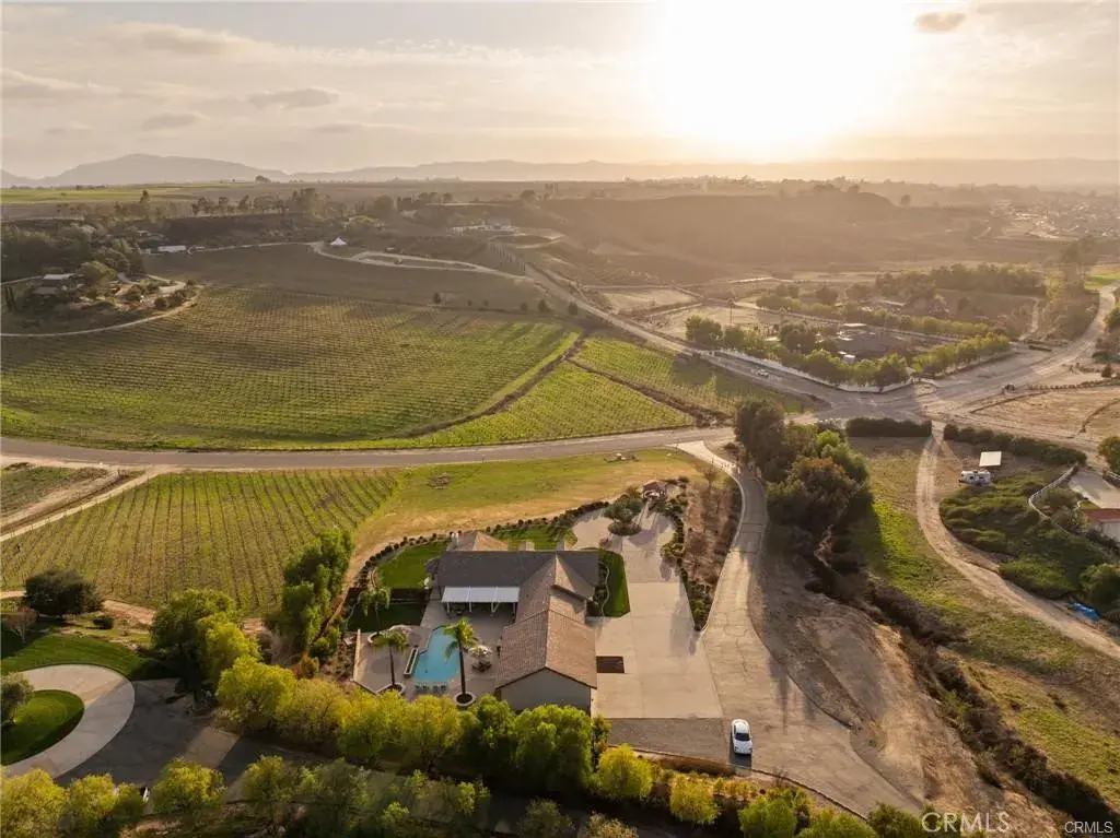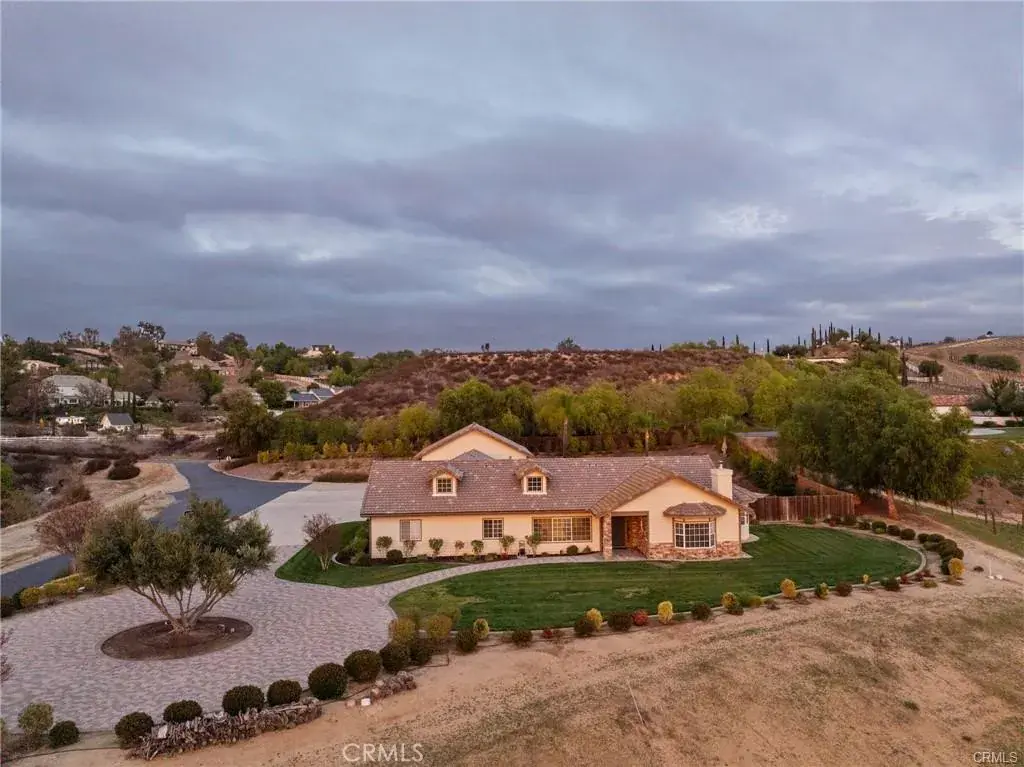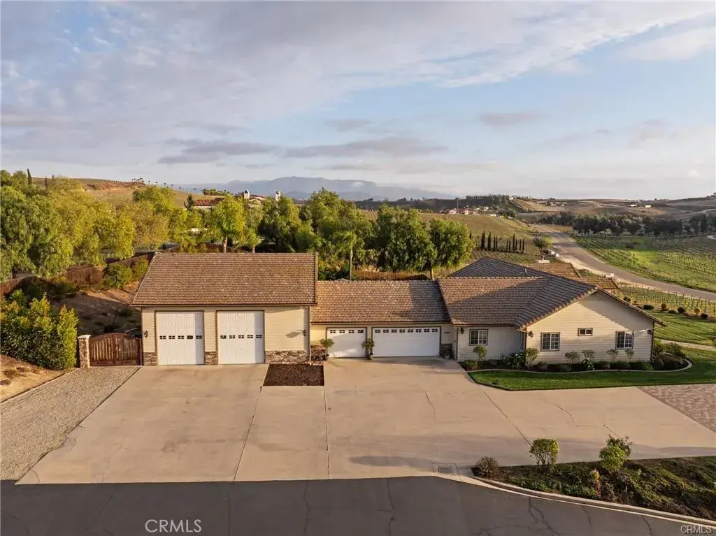 Nestled in the heart of the renowned Temecula Wine Country, this stunning single-story home offers a rare opportunity to live among the region’s most celebrated wineries including Falkner, Akash, and Long Shadow. Enjoy breathtaking panoramic views of the picturesque vineyards and the gentle sight of hot air balloons soaring across the sky, nearly every day. The location simply doesn’t get any better than this. Boasting 2,845 square feet of living space, this home sits on a generous 2.27-acre lot, with four spacious bedrooms, each featuring scenic views, this residence offers an inviting, open atmosphere. The expansive 2,006-square-foot garage with 12-foot ceilings and dual bays provides ample room for your RV, boats, or any of your hobbies—making this property truly a dream for enthusiasts of all kinds. Inside, you’ll find travertine flooring throughout. All of the bedrooms are generously sized, each offering its own stunning view of the surrounding vineyards. The cozy family room features a wood-burning fireplace and the chef’s kitchen is equipped with Corian countertops, an abundance of cabinetry, and a double oven, ideal for cooking and hosting.The home also boasts newly landscaped grounds, including a custom-engineered 30×30 paved driveway that leads to a 12×12 sitting area with a custom gazebo—perfect for outdoor relaxation. The backyard, complete with pavers and lush planters, offers a perfect spot for unwinding or entertaining guests by the sparkling pool and spa. An Alumawood patio cover with fans ensures comfort on warm summer days, making the outdoor space even more inviting. The property also offers a new asphalt private road, providing easy access and privacy. Additionally, there’s a graded space ideal for an ADU or shop, allowing for endless possibilities. Recent upgrades include a new roof job completed in 2024, a brand-new HVAC system, and a reverse osmosis and Kagan PH Alkaline Water System. Other thoughtful touches include two whole-house fans, a hot water circulation pump, ceiling fans, and cased windows throughout the home. Step outside to unwind and watch hot air balloons float gracefully over the vineyards. Enjoy peaceful walks to nearby wineries or simply bask in the tranquility and stunning scenery from your own backyard. Whether you’re entertaining guests or savoring a quiet evening, this home offers the ultimate Temecula Wine Country lifestyle.