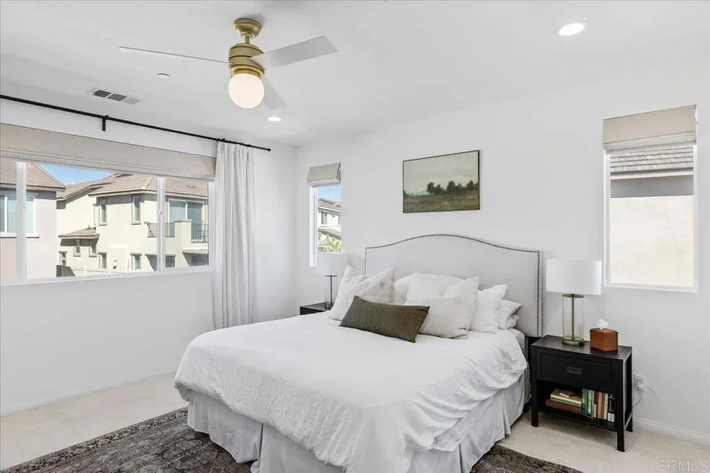 Welcome to Sommers Bend living at its finest in this beautifully upgraded residence offering a flexible and functional floor plan, situated on a corner lot. Featuring 4 bedrooms plus a spacious loft, including a main-level bedroom with an adjacent bathroom, this home is ideal for multi-generational living, guests, or a private office setup. Upstairs offers three additional bedrooms and an open loft space perfect for a media room, playroom, or secondary living area. It is conveniently located within walking distance of the clubhouse and amenities. The interior showcases some of the $150K in extensive upgrades throughout, including wide plank Gencore Madison luxury vinyl plank flooring, quartz countertops with a stunning upgraded honed leather-finish island, upgraded cabinetry, and a thoughtfully designed open-concept layout. The kitchen flows seamlessly into the living and dining areas, highlighted by an upgraded gas fireplace and abundant natural light. Custom Roman shades are installed throughout, featuring blackout shades in the primary bedroom and light-filtering treatments in the remaining spaces. The primary room is further enhanced by a professionally designed custom closet system for ultimate organization. Additional interior enhancements include upgraded balusters, added and upgraded laundry room features, including a sink with cabinets and shiplap, ceiling fan prewiring, an upgraded 4-panel sliding glass door that opens to the California Room patio, and enhanced lighting with recessed fixtures. A custom-built office space provides both functionality and style, while the garage features built-in cabinetry and epoxy flooring for a clean and organized finish. The backyard is designed for both relaxation and entertaining, featuring extensive improvements, including turf, pavers, retaining walls for additional space, a built-in BBQ, fire pit, and additional patio space. The California Room has also been pre-wired for a future outdoor TV, creating the perfect indoor-outdoor living experience. A covered patio adds additional usable outdoor space for year-round enjoyment, along with a door for easier access off the family room. Located within the highly desirable Sommers Bend community, residents enjoy resort-style amenities, including pools, a fitness center, a clubhouse, parks, playgrounds, walking trails, and a vibrant community atmosphere. Conveniently located near Temecula wineries, shopping, dining, and top-rated schools. Hurry before this gem is gone!