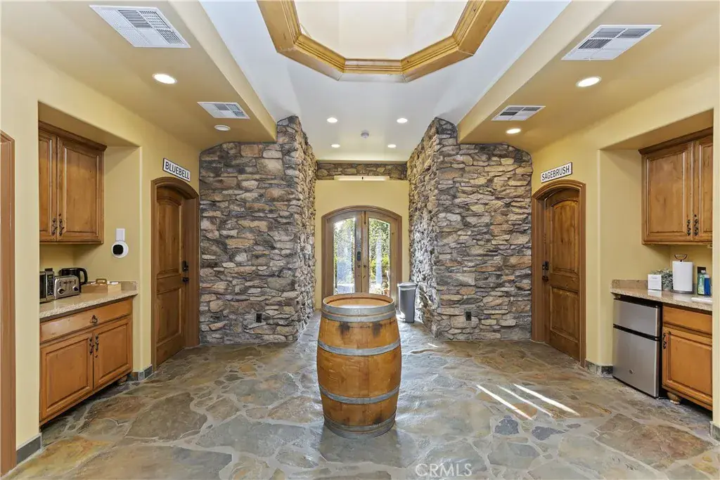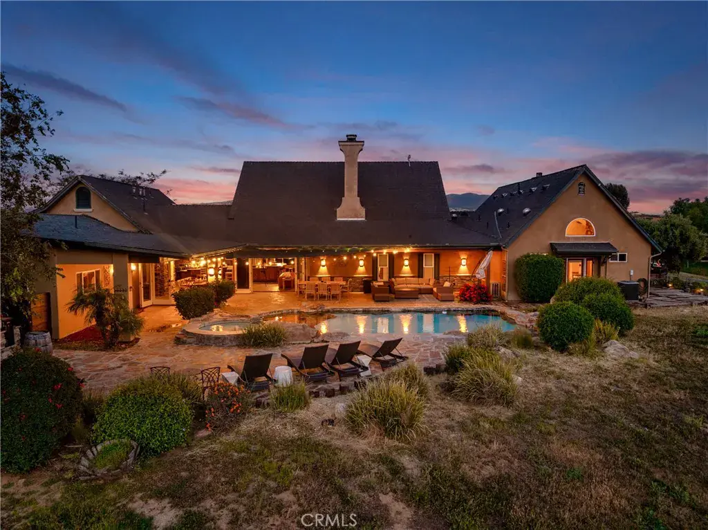Welcome to Peppertree Lane Ranch, a rare 7-acre vineyard-wrapped retreat where privacy, luxury, and effortless indoor/outdoor living come together. Morning hot-air balloons drift overhead; evenings bring quiet sunsets over the vines. Three turnkey residences, resort-style amenities, and extensive equestrian facilities create a setting unlike anything else in Temecula Valley Wine Country.THE MAIN RESIDENCE (4bd/4ba) blends custom stone, wood, and ironwork with true SoCal indoor/outdoor living. A chef’s kitchen with Viking appliances and oversized island opens to an accordion-glass wall for seamless entertaining. Enjoy a pool and spa framed by vineyard views, a spa-style primary suite with covered patio, a second master suite with its own turfed lawn, and a three-car garage.THE COTTAGE (2bd/2ba) near the property entrance offers its own garage, grill area, hammock, bocce court, and picnic space – perfect for guests or weekend getaways.THE VILLA building provides four individually keyed king suites with a shared lobby, each with custom stone grotto showers. The adjoining recreation area includes grills, picnic tables, fire pit, and bocce court.*** Horse lovers will appreciate 15 Stalls with covers, very well built, varying sizes w/a minimum of 18’ x 20’, 60′ round pen, a lighted arena (225’ x 125’)with sound and covered seating, and privately gated access to miles of vineyard trails.*** Plenty of room for vineyards, farm animals, organic gardens, fruit trees or recreation areas.*** Smart-enabled access, mesh WiFi throughout, and exceptional multi-use potential – personal estate, family compound, equestrian center, boutique hospitality, wellness retreat, or creative hideaway. Offered unfurnished; furnishings available.** This property MUST BE EXPERIENCED IN PERSON to appreciate its setting, craftsmanship, and versatility; schedule a tour today.