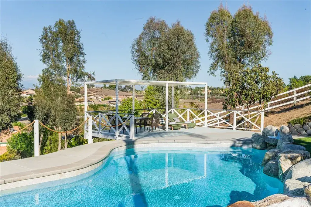 Luxury Living in Meadowview—Don’t Miss Out! Discover luxurious living in this stunning 5-bedroom, 5-bathroom residence tucked away in a serene cul-de-sac on an expansive 1+ acre lot with breathtaking 180° views. This home perfectly blends resort-style amenities, modern updates, and country charm. Highlights Include: Sparkling pool & spa with expansive yard space for entertaining. RV parking with full hookups + generous 3-car garage. Equestrian property with gated access to horse trails. Two ensuite bedrooms + three additional bedrooms, all with updated bathrooms. New wood flooring, cozy living room fireplace, and a freshly painted interior & exterior. New furnace for optimal efficiency. Charming greenhouse for gardening enthusiasts. Deck with panoramic views—ideal for relaxing or hosting gatherings. New solar system, electric vehicle charging stations, and new electric gates. Community Amenities: Enjoy low taxes and a low HOA that provides access to scenic hiking and horse trails, tennis and pickleball courts, a sports court, tot lot, and clubhouse. Prime Location: Located in the desirable Meadowview community, this home offers top-rated Temecula schools, plus close proximity to shopping, dining, and businesses—giving you the perfect balance of country living with city conveniences.