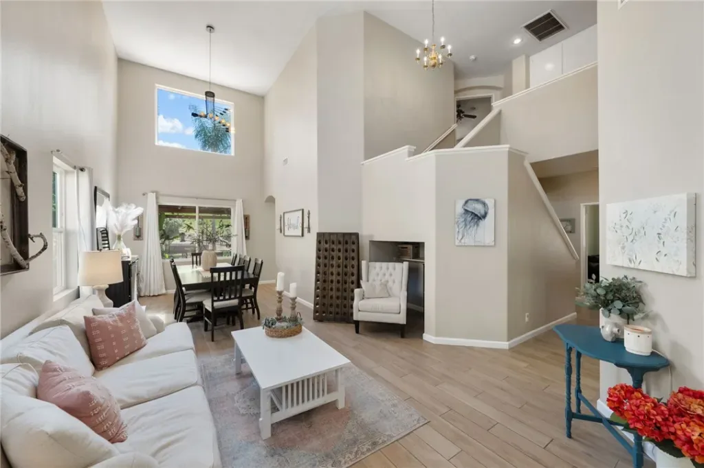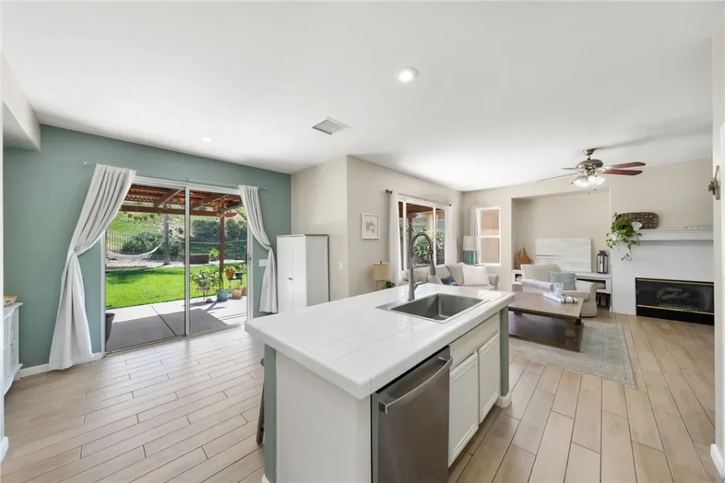 Step inside to find stunning wood-like tile flooring, a bright and spacious living room, and a formal dining area perfect for entertaining. The open-concept kitchen flows seamlessly into the inviting family room, complete with a cozy fireplace—perfect for relaxing evenings at home.