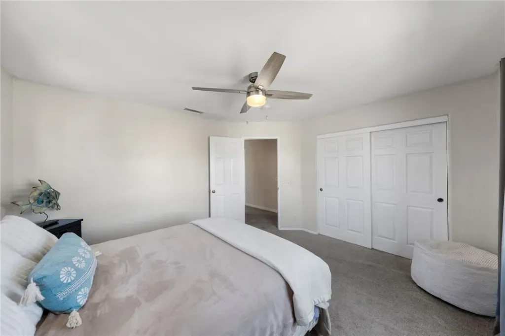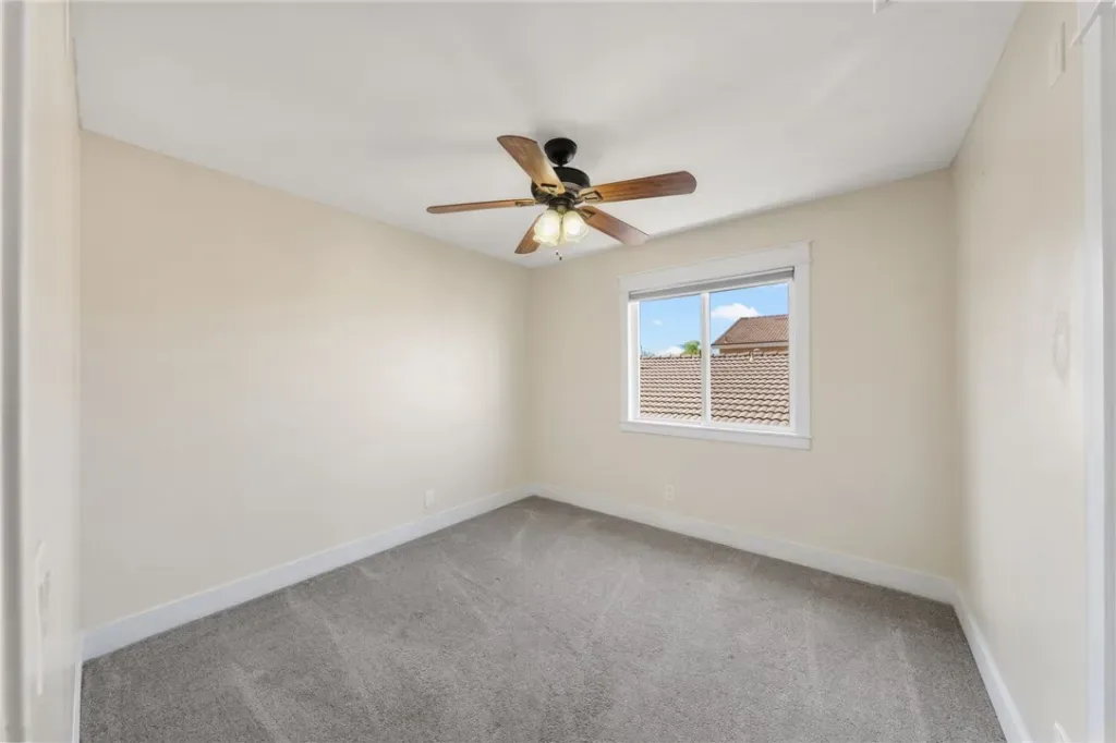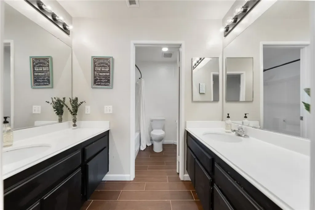 There are ceiling fans in all the bedrooms and family room, plus walk in closets in two of the secondary bedrooms upstairs. The upstairs guest bath is very roomy with vanities across from each other and lots of room for essentials.