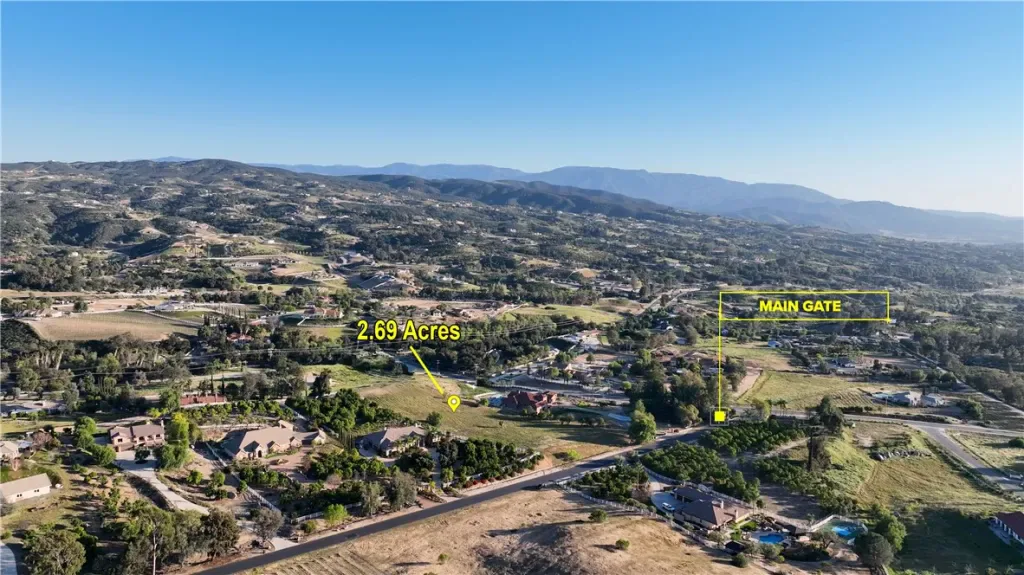 Located in the highly desirable gated community of Glen Oaks Ranch in Temecula Wine Country, this beautiful 2.69-acre estate parcel offers an exceptional opportunity to build your custom dream home. Situated on a quiet cul-de-sac and surrounded by luxury estates, vineyards, and rolling hills, the property has recently been cleaned and cleared, making it easy to envision your future residence and outdoor living spaces. Percolation testing shows favorable results for septic installation (see verification letter). A formal report for permitting has not been obtained. Buyer to verify all development and septic requirements with Riverside County Health Department.