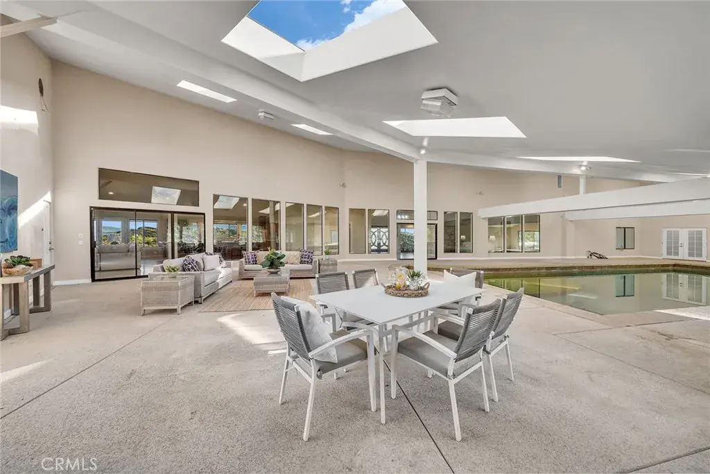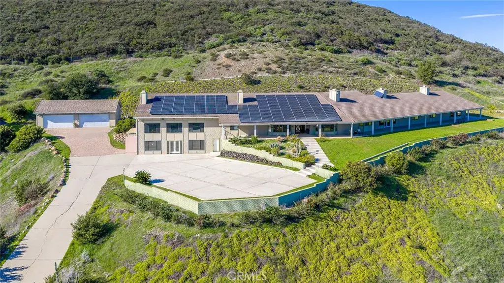 Nestled in the heart of Temecula’s most coveted De Luz community, this extraordinary gated estate offers a rare combination of iconic panoramic mountain views, architectural scale, and exceptional future upside. Set on 10.7 acres of prime land, this is one of the largest residences in the area, designed for both luxurious living and long-term value appreciation.The main residence spans 7,245 sq ft, complemented by an additional approx. 3,000 sq ft indoor pool and patio retreat—a truly rare feature in De Luz. Soaring high ceilings anchor the kitchen, living areas, and two primary suites, creating an open, light-filled environment where nearly every room captures sweeping views of the mountains, valley, and city lights.This thoughtfully designed floor plan features 7 bedrooms and 6 bathrooms, including dual primary suites ideal for multi-generational living, extended guests, or executive-level privacy. Each secondary bedroom includes its own suite bath, enhancing comfort and flexibility. The gourmet kitchen is a centerpiece, showcasing an oversized island, premium custom cabinetry, and generous entertaining space seamlessly connected to the main living areas.Outdoors, the estate unfolds into a fully usable, gently sloped landscape with a productive avocado grove of over 600 mature trees, blending luxury with agricultural opportunity. A 130-panel owned solar system, advanced water-saving irrigation, city water service, and supplemental storage tank support long-term sustainability and operational efficiency.The property also offers exceptional expansion and income potential: a detached 4-car garage, expansive flat parking accommodating 10+ vehicles and RV, and ADU conversion possibilities—positioning this estate as a compelling value-add opportunity in one of De Luz’s most scenic corridors. With no rear development, privacy and views are preserved.Just minutes from Old Town Temecula, renowned wineries, and major conveniences, this estate is priced below market, offering immediate equity and rare versatility—whether as a private luxury retreat, multi-generational compound, or long-term investment.A singular De Luz offering where views, scale, privacy, and upside converge.Don’t miss this rare opportunity.