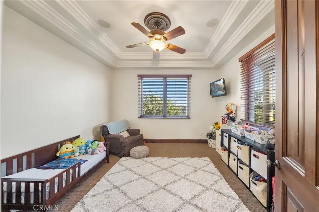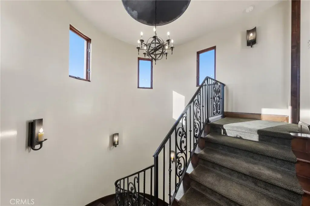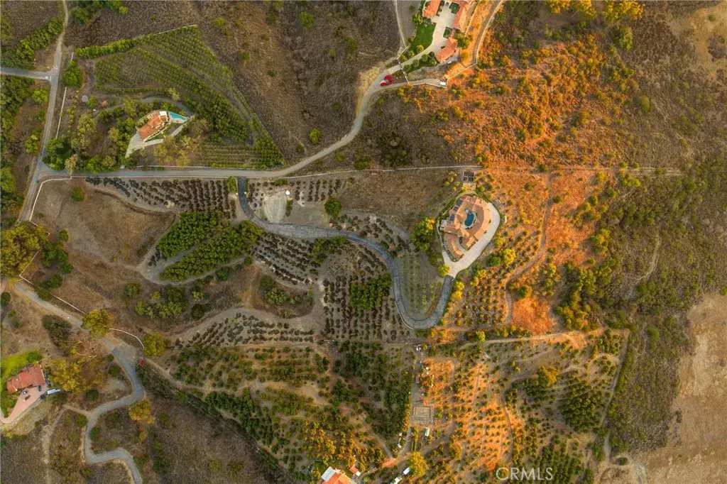 Additional highlights include a six-car garage, four tankless water heaters, a private well with a 5,000-gallon storage tank, and thoughtfully placed olive and fruit trees enhancing the estate’s agricultural charm.