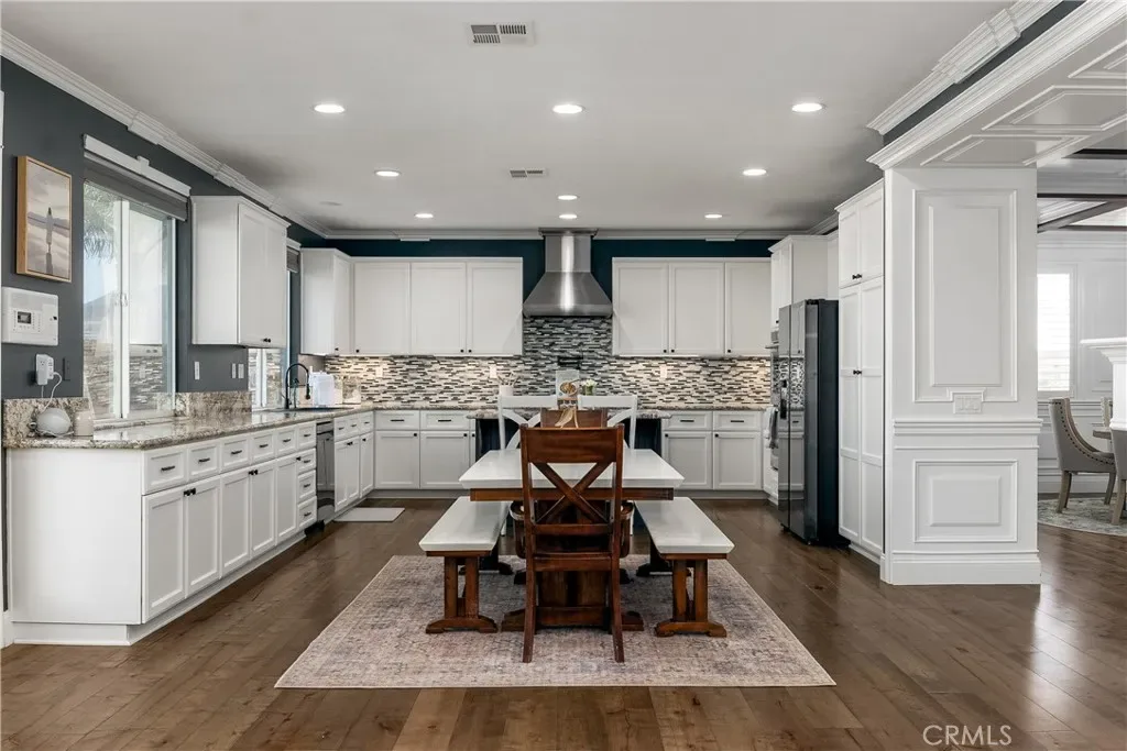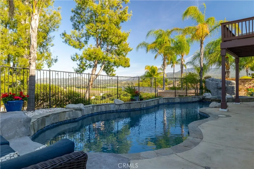 Well-executed and thoughtfully upgraded, this nearly 4,000 sq ft home in Crowne Hill includes paid solar—a meaningful advantage from day one—and is conveniently located in South Temecula. Inside, the home carries a custom feel with detailed wall treatments, millwork, and exposed beam ceilings that add depth and character beyond the typical. The layout offers a balance of defined spaces and open flow, including formal living and dining areas plus a separate office/den. The kitchen is designed for real use—featuring extensive white cabinetry, generous granite workspace, a functional center island with bar seating, upgraded appliances, and a double oven. It opens to the dining area and an oversized family room with fireplace and media niche, creating a natural hub for daily living and entertaining. A main-floor bedroom and full bath offer flexibility for guests or multi-generational living, along with a laundry room that includes added storage and a utility sink. Upstairs, you’ll find five additional bedrooms and a large bonus room behind double doors—well-suited for a media room, game room, or second living space. The primary suite is set apart with a private balcony and retreat area. The ensuite includes dual vanities, a soaking tub, separate shower, and a spacious walk-in closet. The backyard brings both function and setting with a built-in pool and spa (chlorine with optional salt conversion) and open views stretching toward Wine Country. Located near Crowne Hill Elementary, parks, shopping, and dining, this home offers scale, flexibility, and thoughtful upgrades in one of Temecula’s most established communities.