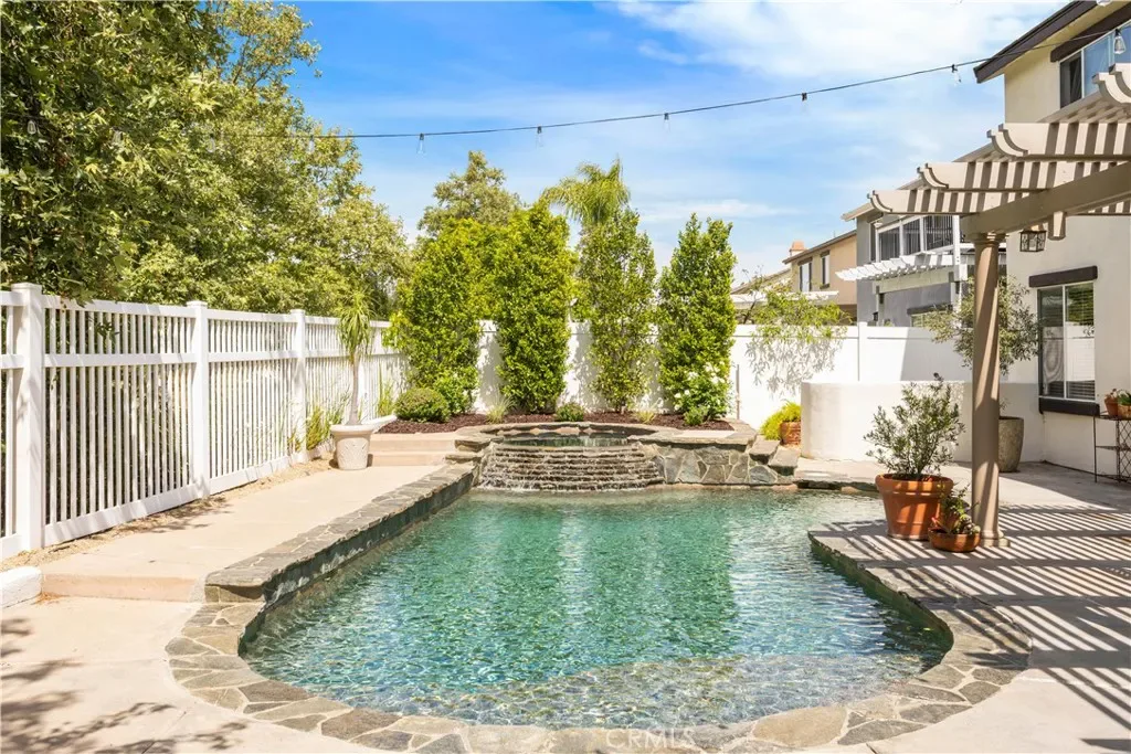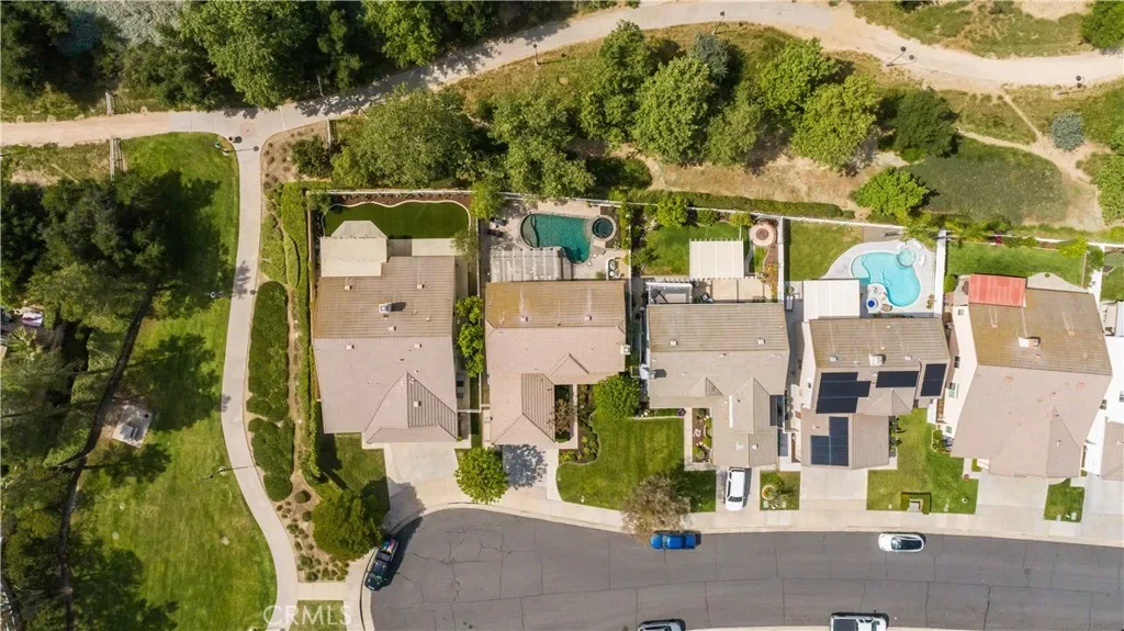 PASEO DEL SOL CHARMER! Pool/Spa home at the end of a Cul de Sac, plus this home backs to the Paseo Del Sol walking trails. 2451 sq. ft with 4 Bedrooms (all upstairs) 2.5 Baths, a Main level Office & a Main level Bonus Room. Well maintained mature landscaping all throughout the property. Covered front porch entry. Open floorplan and light & bright throughout. Formal Living and Dining rooms at the front of the house. Cozy, gas fireplace in the living rm. Family room/kitchen combo + office span the back of the home w/ views of the lush & peaceful surroundings in the backyard. The kitchen has a center island for added workspace, stainless steel appliances & granite tile countertops. The main level Bonus Rm was added, through the builder, and is currently used as a media room, but could easily be another home office or a play room. Upstairs are the 4 bedrooms, including the Primary Suite. The primary suite has high ceilings, dual closets + dual sinks & separate tub/shower in the bathroom. The backyard and pool have just been updated & improved. No direct neighbors behind, just lush green landscaping from the Paseo walking trail. Entertainers backyard with a sparkling Pool/Spa, built in BBQ island & shaded Dining Space. Paseo del Sol community offers many amenities: 3 pools, Tennis, Fitness, Parks, Community Activities and Miles of Walking Trails. Low Taxes due to no Mello Roos in this community. Walking distance to Elementary & Middle Schools. Overall Great Location in South Temecula, close to shopping, medical, restaurants & all the Temecula Wineries. Come see this home ASAP