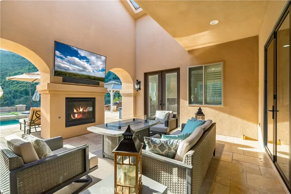 3 Bedrooms + Office (Optional 4th) | Every Bedroom En-Suite | 3.3 Acres in De Luz. As the seller prepares for a corporate relocation, this exceptional De Luz estate presents a rare opportunity to own a private, resort-inspired retreat just 20 miles from the Pacific Ocean. Ideally located approximately 4 minutes to the I-15 and 7 minutes to Old Town Temecula, the property offers a unique blend of privacy and convenience. Set behind custom gates on approximately 3.3 acres, the property blends refined Mediterranean design with the tranquility of its natural surroundings. Light-filled interiors feature soaring ceilings, a seamless open floor plan, Versailles-pattern travertine flooring, and warm wood floors in the bedrooms. Four fireplaces throughout the home add warmth, ambiance, and architectural character. The residence offers three spacious bedrooms, each with its own en-suite bath, plus a dedicated office that can easily convert into a fourth bedroom, providing both flexibility and functionality for modern living. One bedroom is thoughtfully positioned on a separate wing of the home, offering ideal privacy for guests, extended family, or live-in support. The primary suite is a true sanctuary with a dual-sided fireplace, private sitting area, and spa-inspired bath. The chef’s kitchen is beautifully appointed with custom cabinetry and a suite of premium Dacor appliances, including a built-in refrigerator, warming drawer, undercounter ice maker, and a 48-inch seven-burner cooktop with dual ovens. Indoor-outdoor living is effortless, with accordion glass doors opening to a fully designed entertaining space featuring a covered lounge, fireplace, outdoor kitchen, and bath. At the heart of the grounds, a stunning resort-style saltwater pebble-finish pool and oversized spa create a true private oasis, designed for both relaxation and large-scale entertaining. A bocce ball court, orchard, and drought-tolerant landscaping further enhance the property’s natural beauty. With ample usable land and potential for an ADU or additional uses, this property offers a rare combination of privacy, flexibility, and elevated Southern California living.