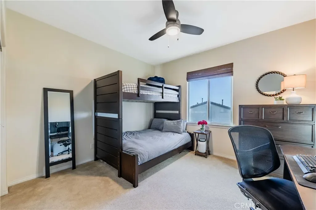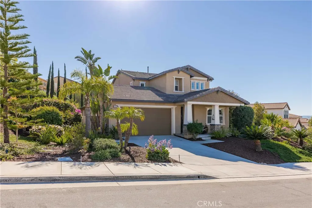 Welcome to your dream home in the highly sought-after Morgan Hill community of Temecula—where refined design and resort-style living come together seamlessly. This stunning 4-bedroom, 3.5-bath residence spans 3,003 sqft on an expansive 10,890 sqft lot, offering a rare and highly desirable primary suite on the main level. From the moment you arrive, you’re greeted by a striking front door with elegant glass inlay and an inviting sitting area. Just off the entry, a spacious secondary downstairs bedroom—ideal for guests, multi-generational living, or a private office—sits adjacent to a beautifully appointed full bath. The main living space is both warm and sophisticated, featuring custom built-in bookshelves, a fireplace, and an abundance of natural light that fills the home through oversized windows. The kitchen is a true showpiece, designed for both everyday living and entertaining, featuring stunning quartzite countertops, a custom ceramic tile backsplash, dual ovens, a large walk-in pantry, updated fixtures throughout, and a beautiful white porcelain drop-in sink that anchors the space. The downstairs primary suite is a private retreat, complete with plantation shutters, ceiling fan, and a spa-inspired bathroom featuring an oversized walk-in shower, soaking tub, dual sinks, and an expansive walk-in closet. Upstairs, you’ll find generously sized secondary bedrooms, a dual-sink bathroom, and a versatile loft/bonus room enhanced by gorgeous built-in cabinetry—perfect for a home office, media room, or additional living space. Step out onto the upper deck and take in breathtaking views that elevate the entire experience. Designed with comfort and efficiency in mind, the home includes a brand new 5-ton A/C unit, whole house fan for cool summer evenings, upgraded thermostats, water softening and purification system, and leased solar. The backyard is an entertainer’s dream—featuring a covered patio with ceiling fan, built-in BBQ island with mini fridge, multiple seating areas, outdoor heaters, and a beautifully illuminated putting green that doubles as a bocce ball court, creating a truly unique outdoor experience. Residents of Morgan Hill enjoy exclusive access to a resort-style clubhouse, pools, fitness center, tennis and pickleball courts, parks, and scenic walking trails—all just minutes from Temecula Valley Wine Country and Old Town Temecula, and within the award-winning Temecula Valley Unified School District. This is more than a home, it’s a lifestyle.