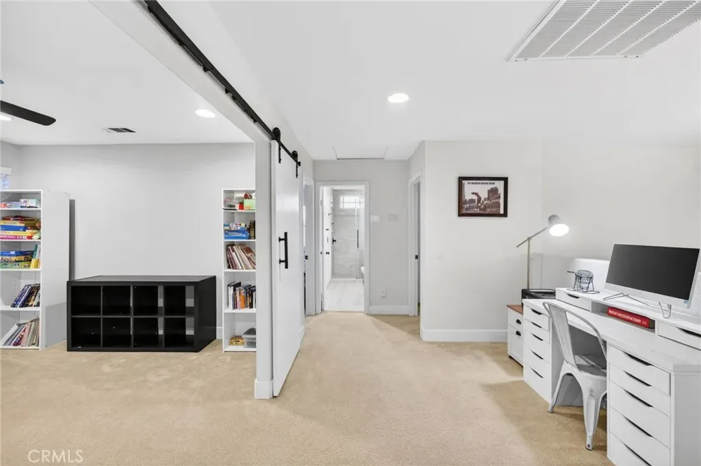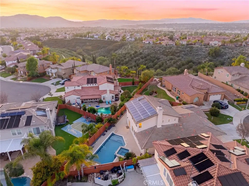 Designed for entertaining, the backyard is a private retreat featuring a sparkling pool and spa with waterfall features, multiple seating areas, lush landscaping, and a spacious grassy yard. The large cul-de-sac lot offers both privacy and room to enjoy outdoor living year-round. The home also features owner-paid solar for energy efficiency and long-term savings.